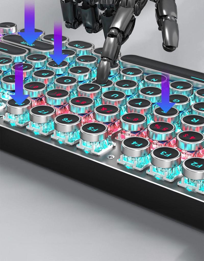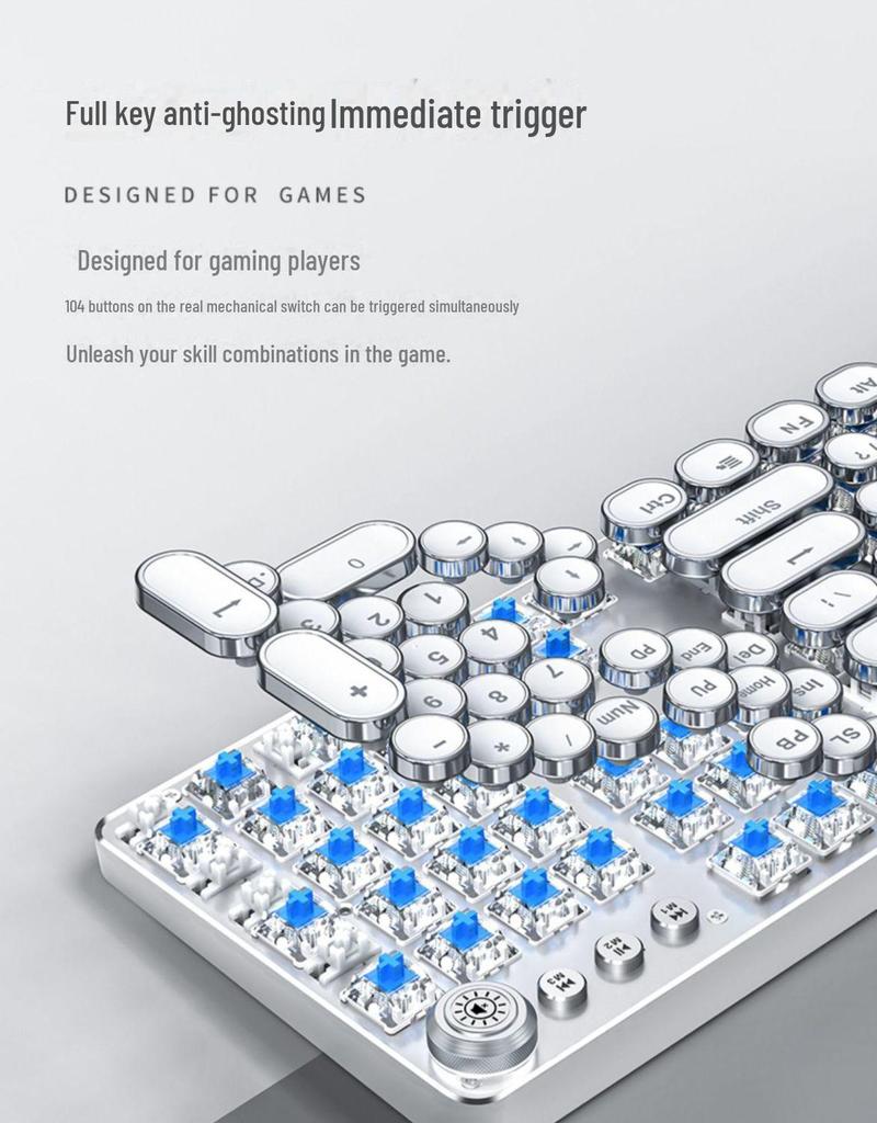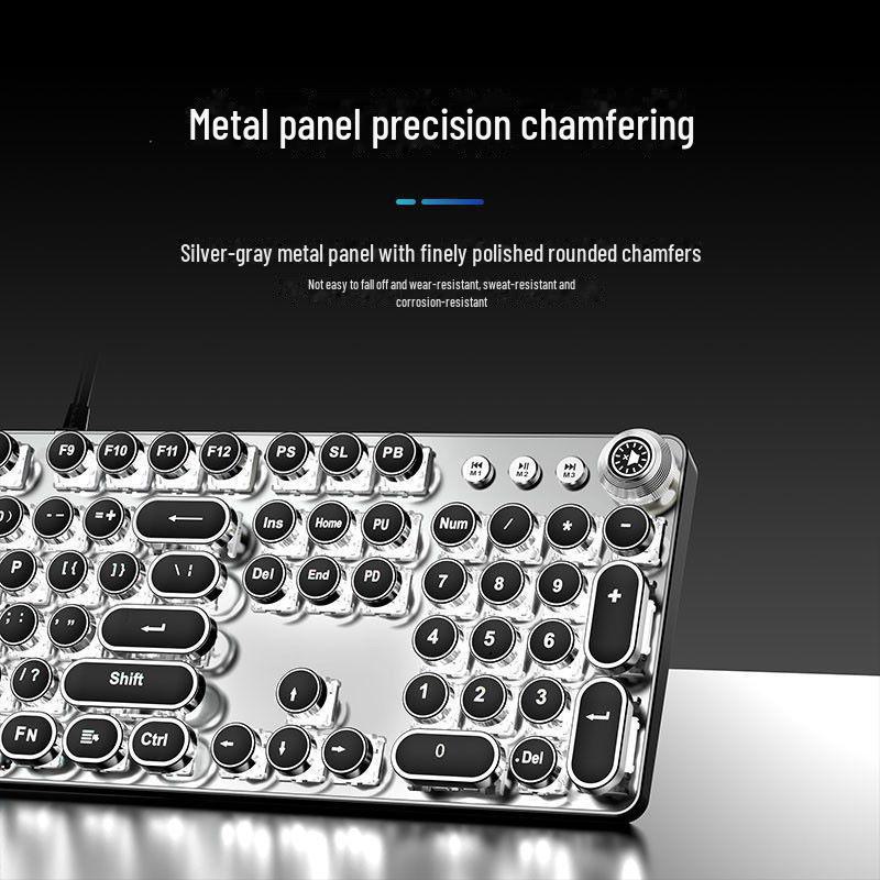Проводная механическая игровая клавиатура TK100 в стиле ретро-стимпанк с синей осью и ручкой