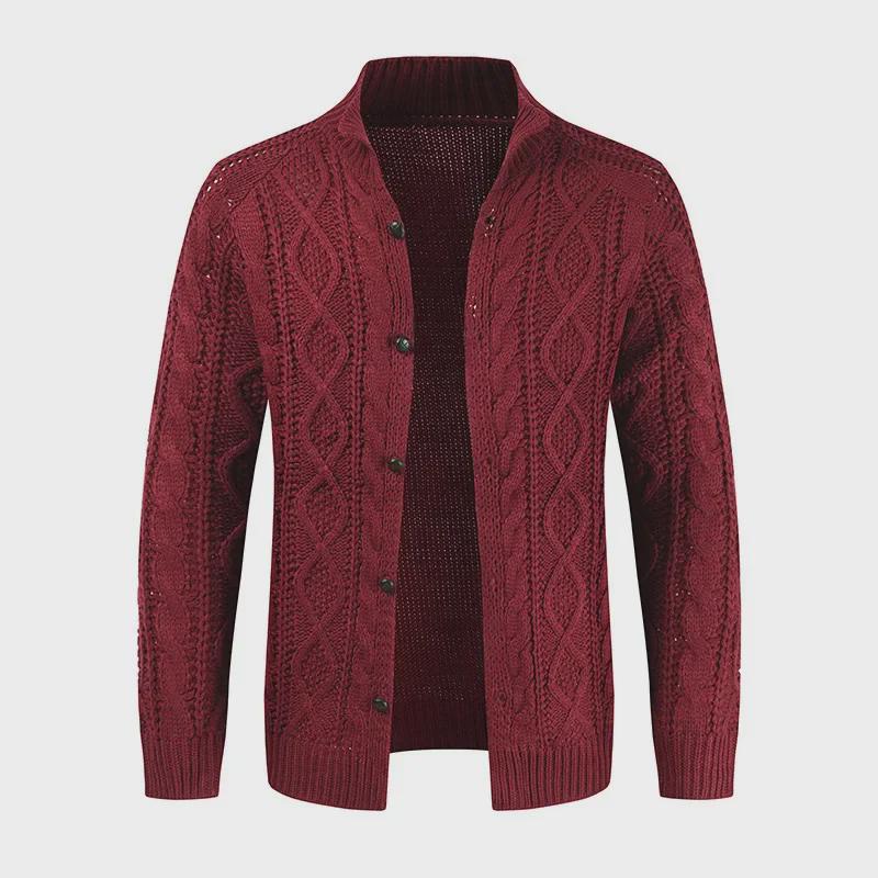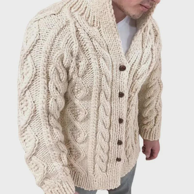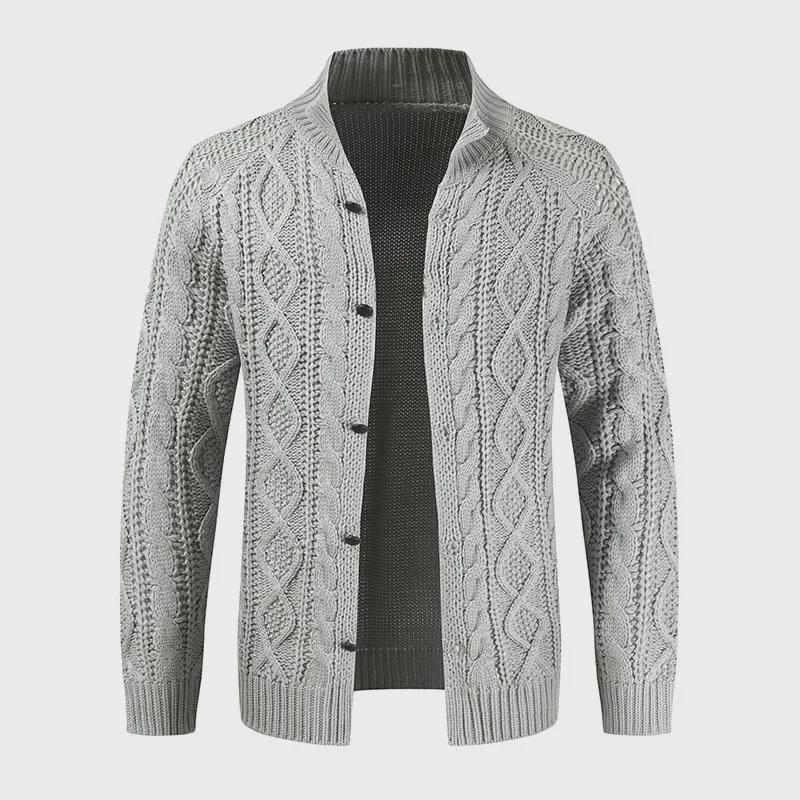2022 Мужской кардиган-свитер с жаккардовым узором в европейском и американском стиле с широким воротником-стойкой и длинными рукавами