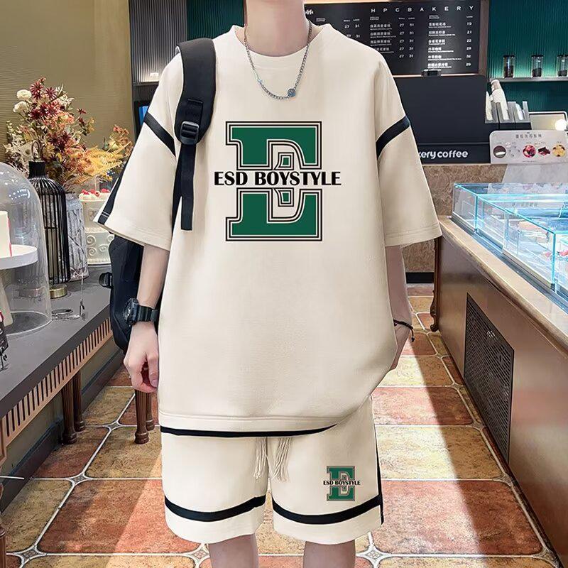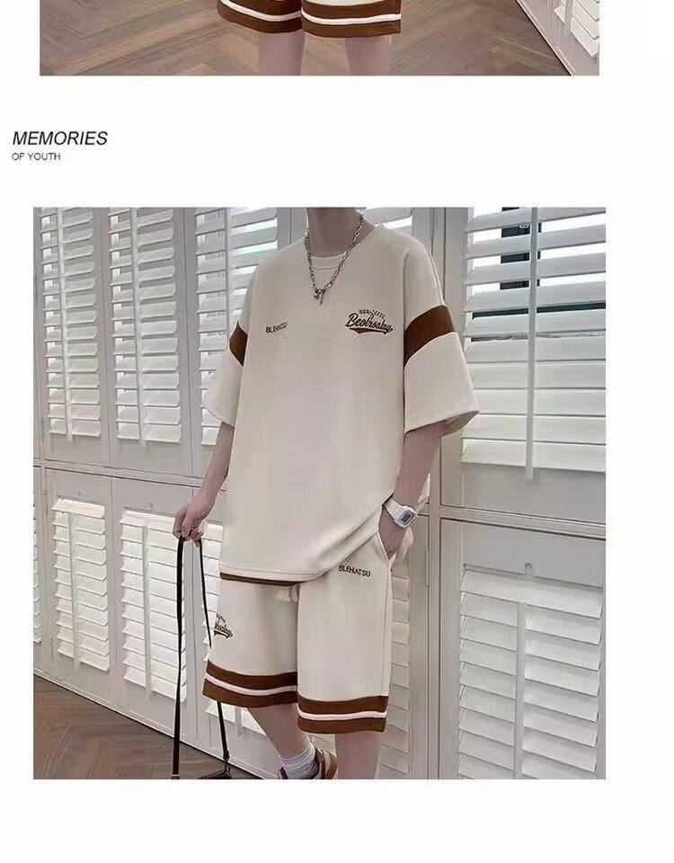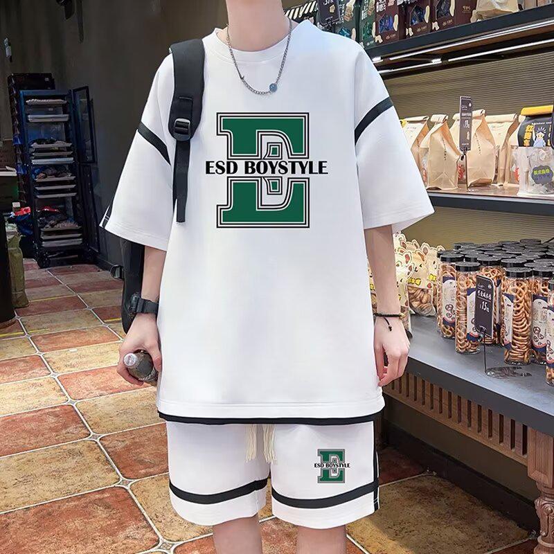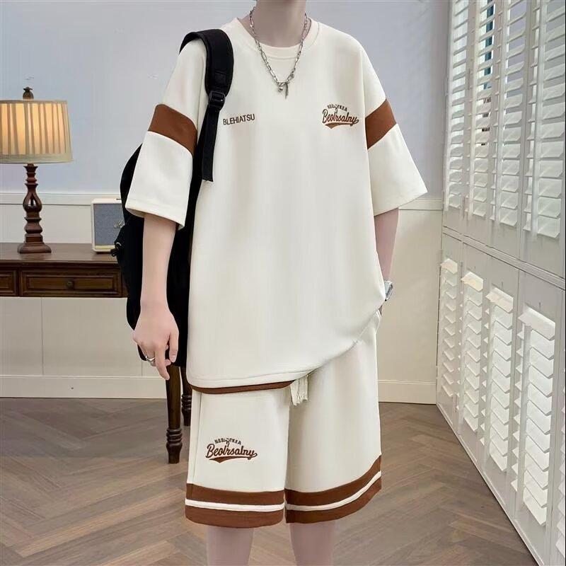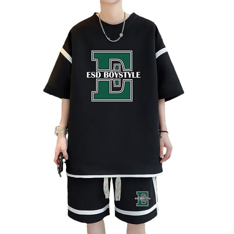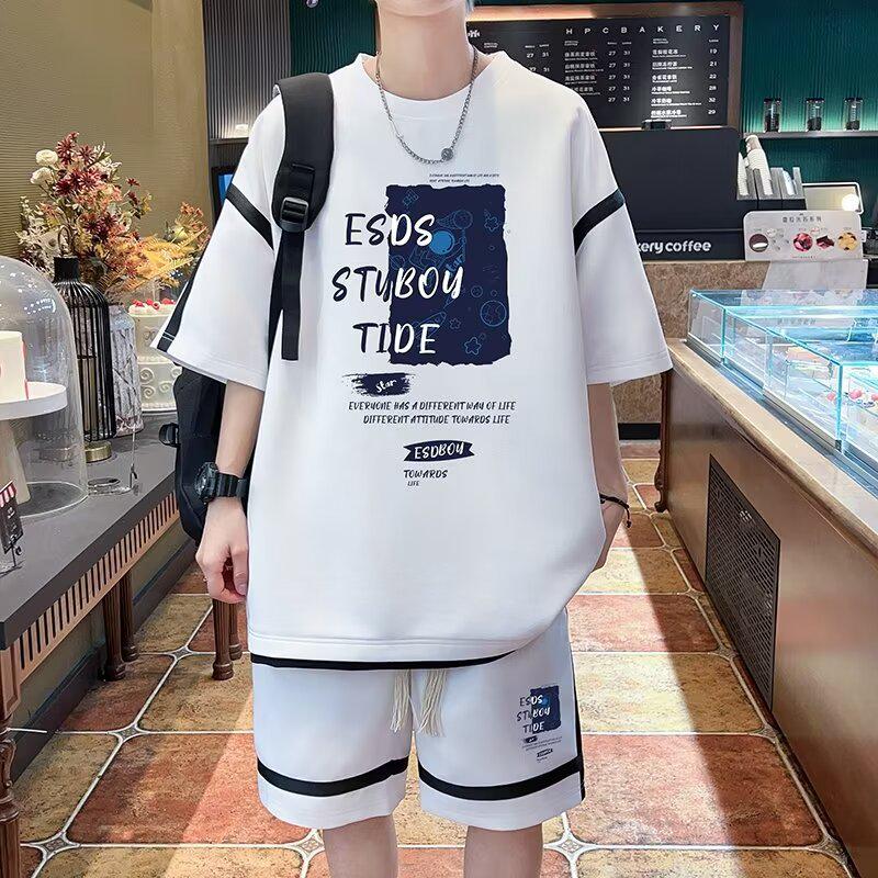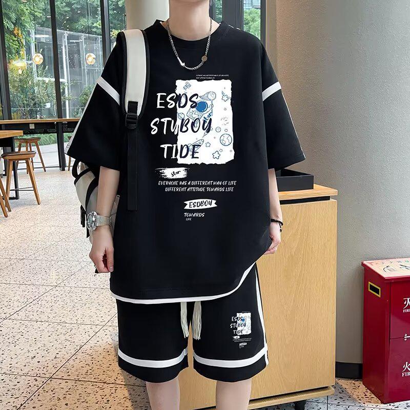 Мужские летние повседневные костюмы: Комплект из свободных футболок и шорт для подростков в новом стиле
