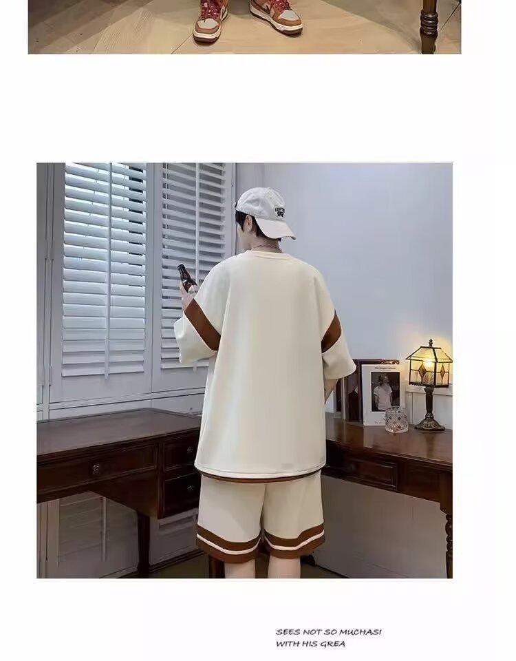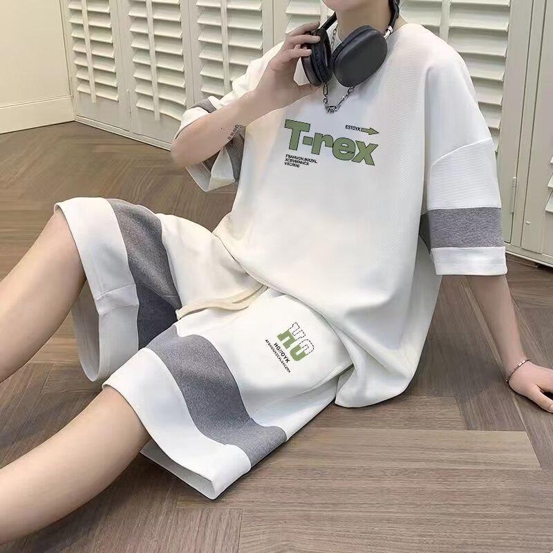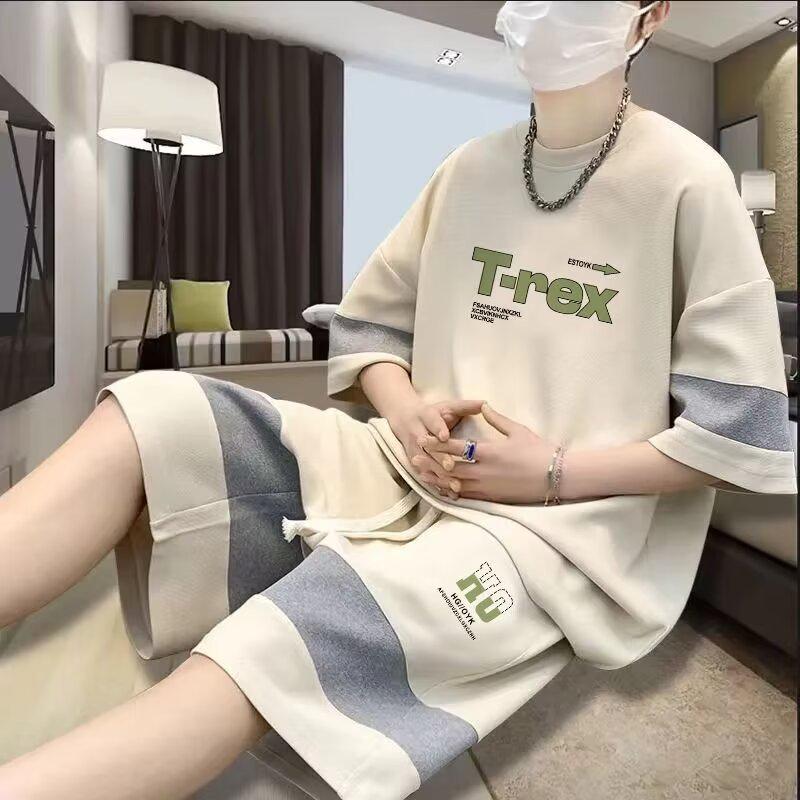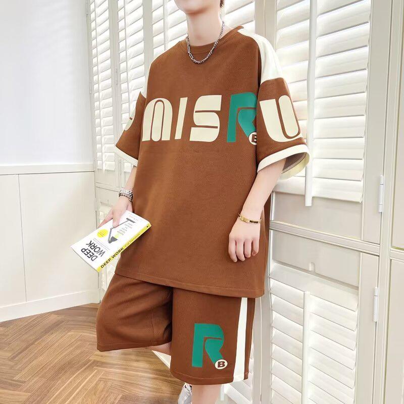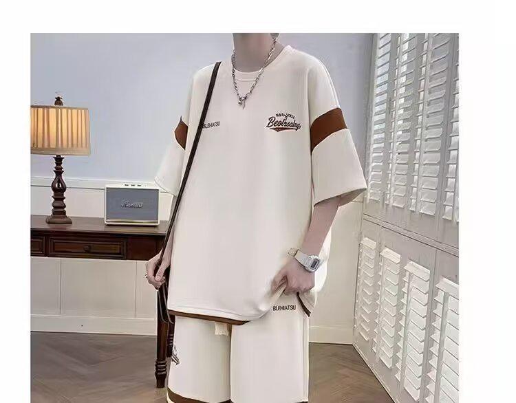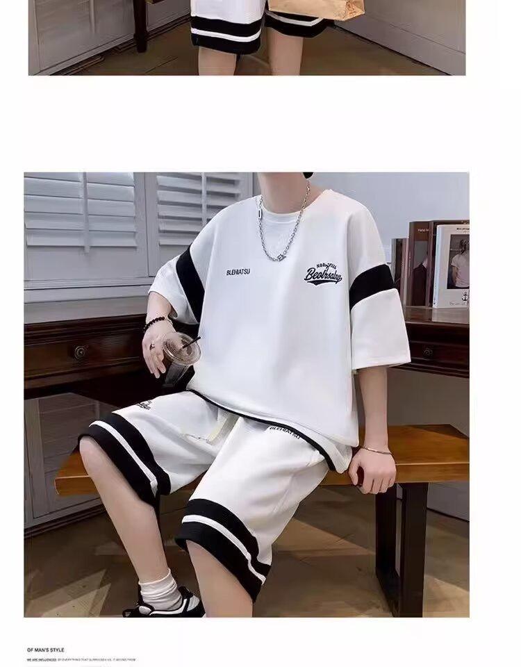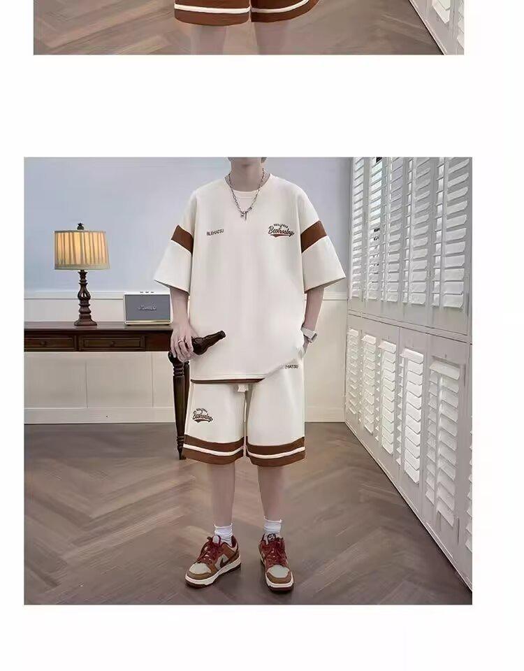Мужские летние повседневные костюмы: Комплект из свободных футболок и шорт для подростков в новом стиле