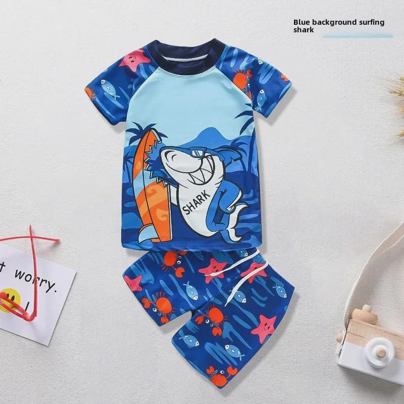Комплект купальника с короткими рукавами и рисунком для мальчиков 2024 года с шапочкой для плавания и плавками — купить товар онлайн с бесплатной доставкой по всему миру!