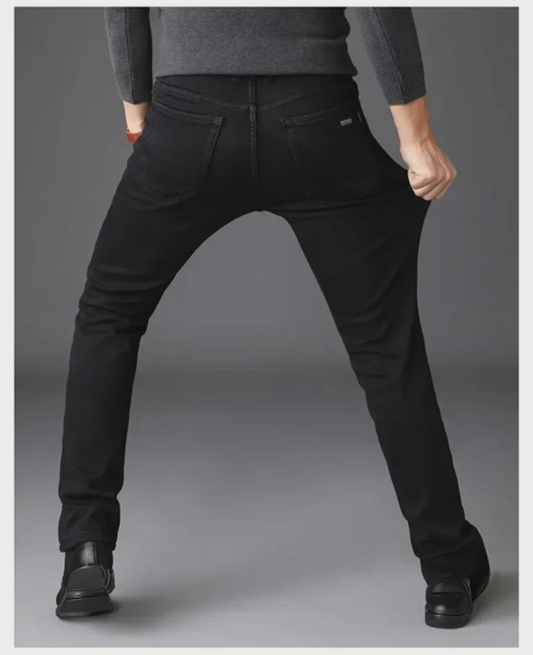 Эти мужские облегающие черные эластичные джинсы станут стильным и универсальным дополнением к любому гардеробу.. Эти джинсы, изготовленные из высококачественного хлопка, обеспечивают комфорт и долговечность, сохраняя при этом элегантный современный силуэт.. Эластичный материал обеспечивает плотную посадку, дополняющую дизайн брюк-карандаш, что делает их идеальными как для повседневных, так и для полуофициальных мероприятий.. Эти джинсы идеально подойдут тем, кто следит за модой: они гармонично сочетают в себе современный стиль и практичность.
