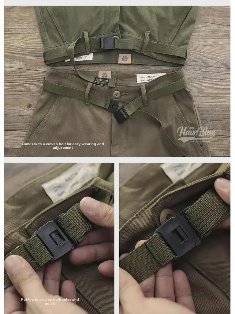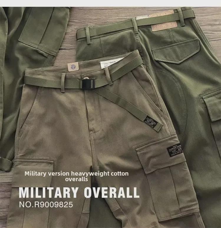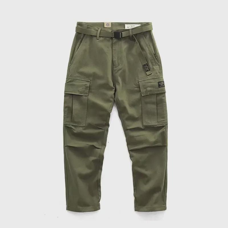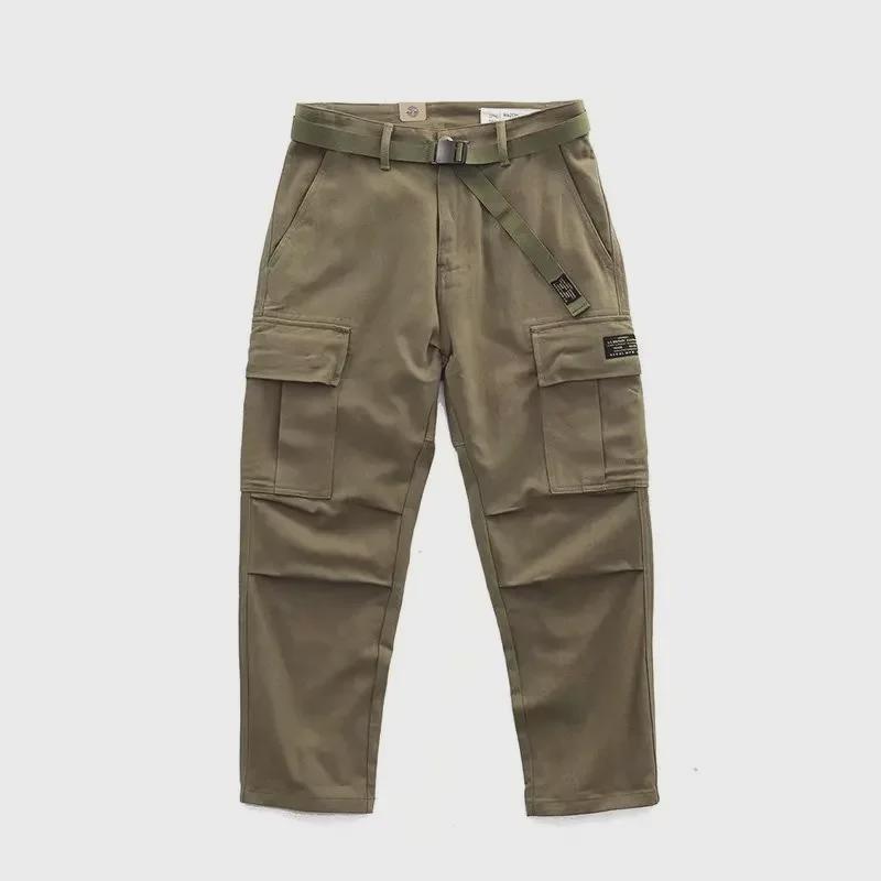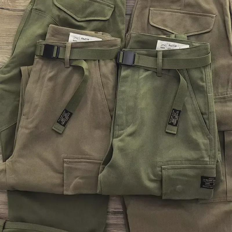 Мужские ретро-штаны в стиле милитари с широкими штанинами и множеством карманов - повседневные прочные комбинезоны на осень/зиму