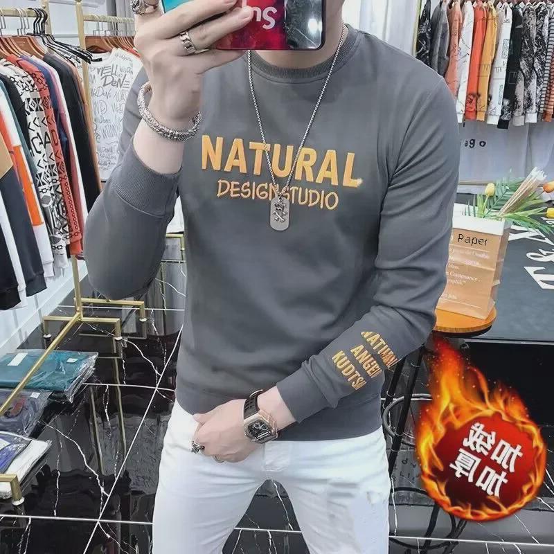 Высококачественная мужская европейская толстовка: Модный, с длинными рукавами, плюс бархат, весна/осень, утолщенный зимний топ