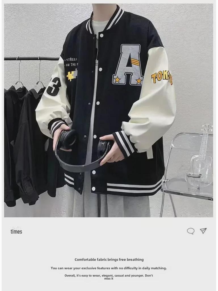 Мужская модная бейсбольная куртка с вышитым воротником-стойкой - осенняя коллекция