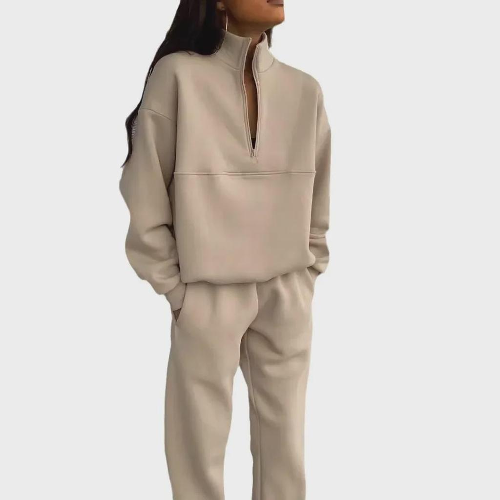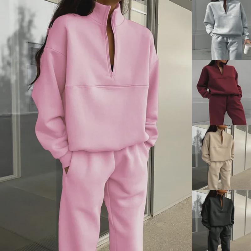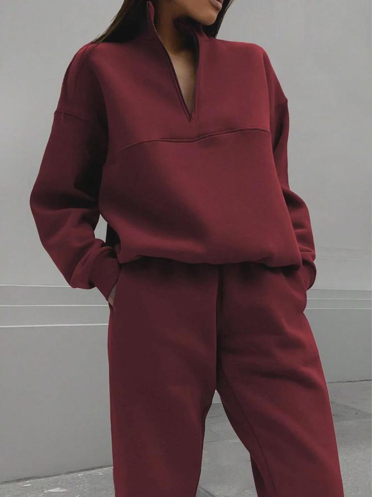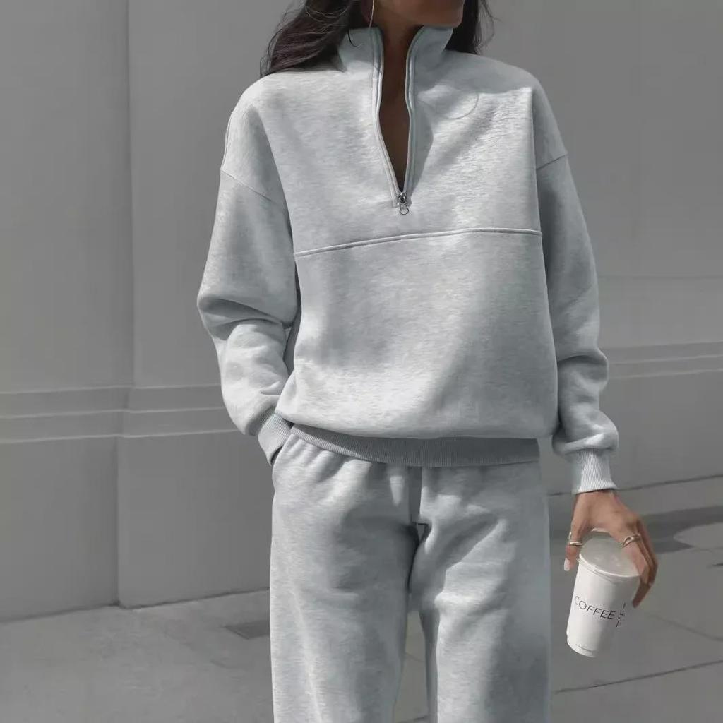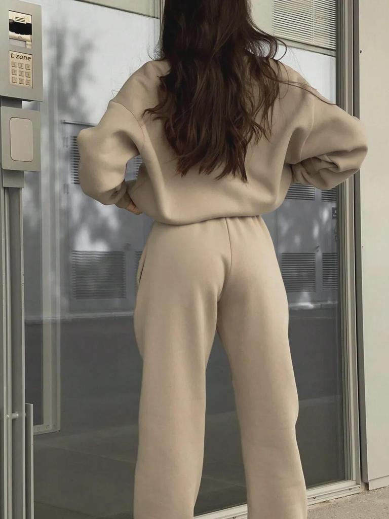 Ощутите максимальный комфорт и стиль в этом повседневном костюме из двух частей, включающем толстовку с застежкой-молнией на лацкане и соответствующие спортивные брюки.. Изготовленный из высококачественного полиэстера, этот костюм обеспечивает долговечность и мягкость на ощупь.. Модель выполнена в однотонном цвете и имеет элегантный и современный вид, идеально подходящий для осеннего и зимнего сезонов.. Легкая подкладка из полиэстерового меха обеспечивает дополнительный слой тепла, что делает ее идеальным выбором как для отдыха в помещении, так и для прогулок на свежем воздухе.