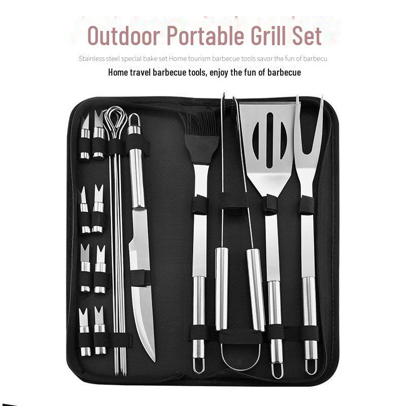 Портативный набор инструментов для барбекю из 18 предметов с сумкой из ткани Оксфорд и столовыми приборами из нержавеющей стали