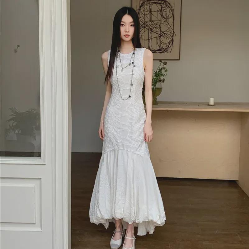 Женская белая юбка Flower Bud, облегающая талию: Стройное и стильное длинное платье с подтяжками на лето 2024 года