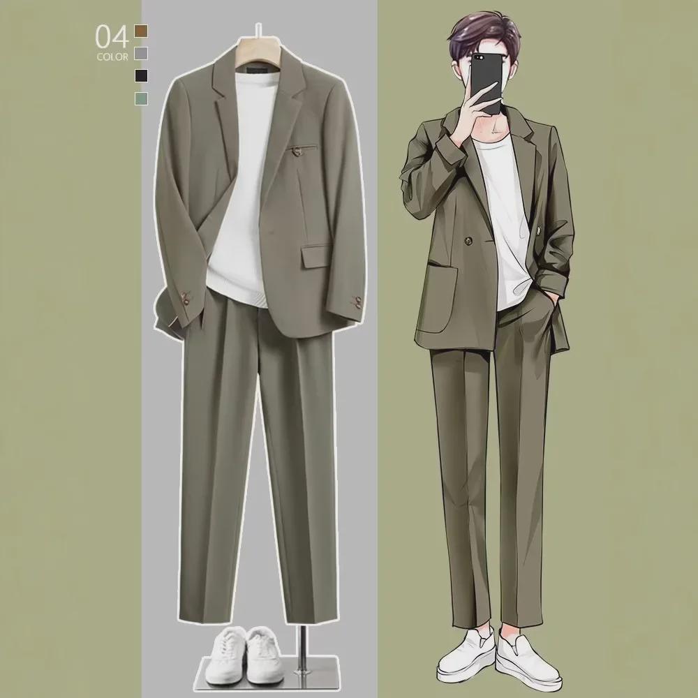 Мужские повседневные костюмы в корейском стиле высшего качества — свободные и зрелые весенне-летние куртки