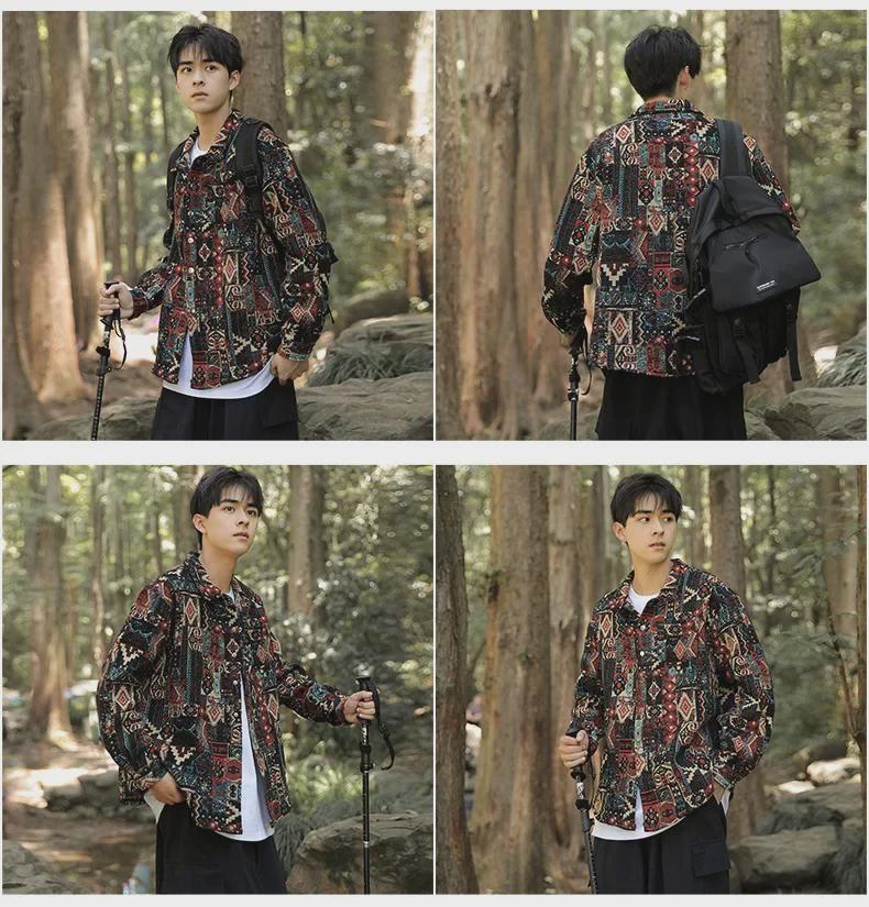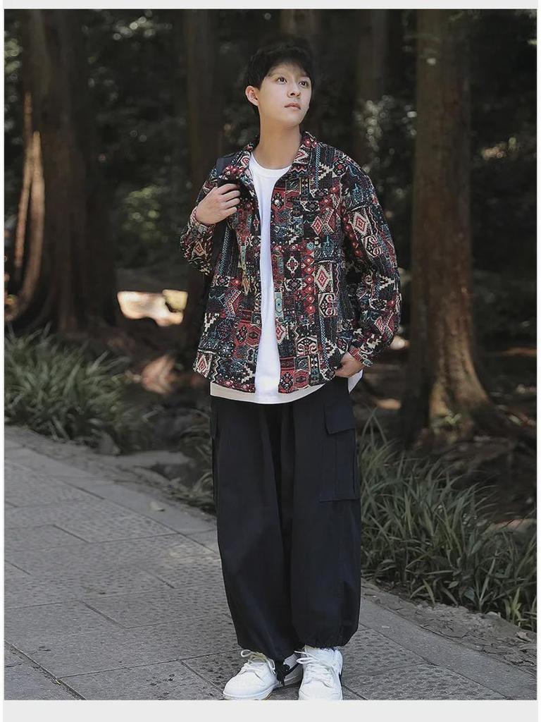 Почувствуйте стиль, неподвластный времени, с этой рабочей курткой средней толщины, изготовленной из удобного хлопкового материала.. Модель с однотонным узором, приталенным вырезом и длинными рукавами идеально подходит для прохладных весенних и осенних дней.. Эта куртка, пропитанная свободным хип-хоп-стилем, может похвастаться сложной жаккардовой вышивкой в стиле ретро, непринужденно сочетая классический шарм с современным уличным стилем.. Идеально подходит для мужчин, которые ценят уникальные детали и свободный крой. Это универсальная вещь для любого повседневного гардероба.
