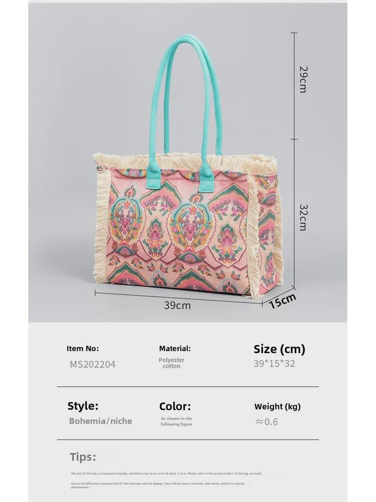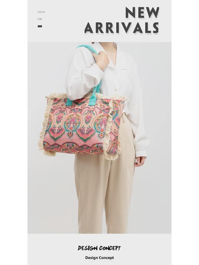 Сумка-тоут Bohemian Retro Canvas - женская летняя сумка через плечо с застежкой-молнией и большой вместимостью