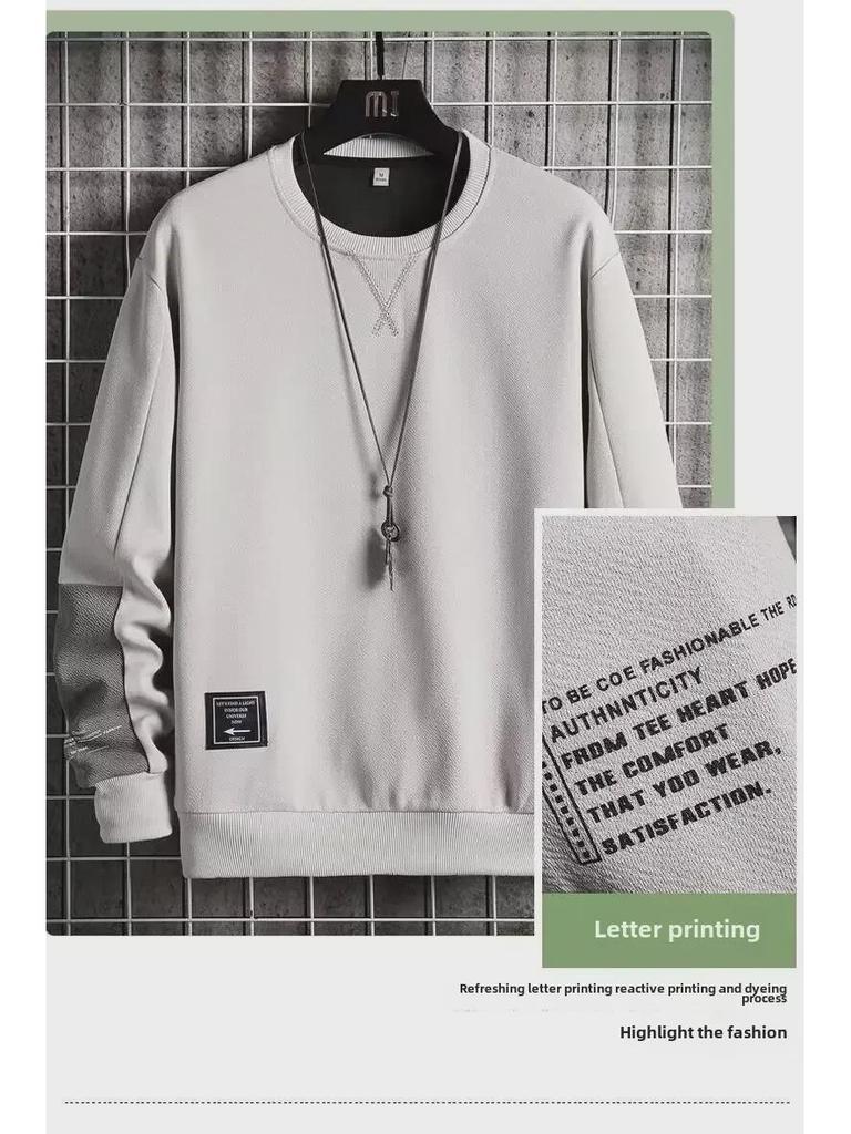 Модная мужская толстовка с круглым вырезом — свободный крой, длинный рукав, идеально подходит для весны и осени, универсальный стиль.