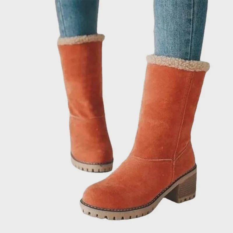 Эти стильные зимние сапоги длиной до середины икры предназначены для женщин, которым нужно тепло и универсальность в холодные месяцы.. Эти ботинки, выполненные из роскошного замшевого материала, обеспечивают мягкость и уют, дополняя ваш зимний гардероб.. Толстый каблук обеспечивает устойчивость и поддержку, делая их удобными для ношения в течение всего дня.. Оснащены прочной резиновой подошвой, гарантирующей отличное сцепление и тягу на скользких поверхностях.. Подкладка из овечьей шерсти обеспечивает исключительное тепло, идеально подходящее для сохранения тепла ног в холодную погоду.. Полиуретановая стелька добавляет дополнительный слой амортизации, гарантируя комфорт каждого шага.. Независимо от того, гуляете ли вы по заснеженным улицам или проводите день на открытом воздухе, эти ботинки легко сочетают в себе функциональность и моду.