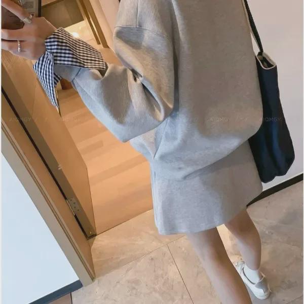 300 г хлопковая смесь, британский стиль, раздельный комплект: Свитшот и короткая юбка «Ранняя осень»
