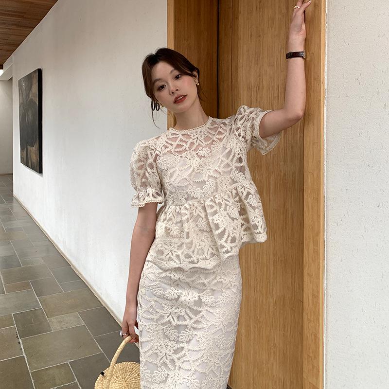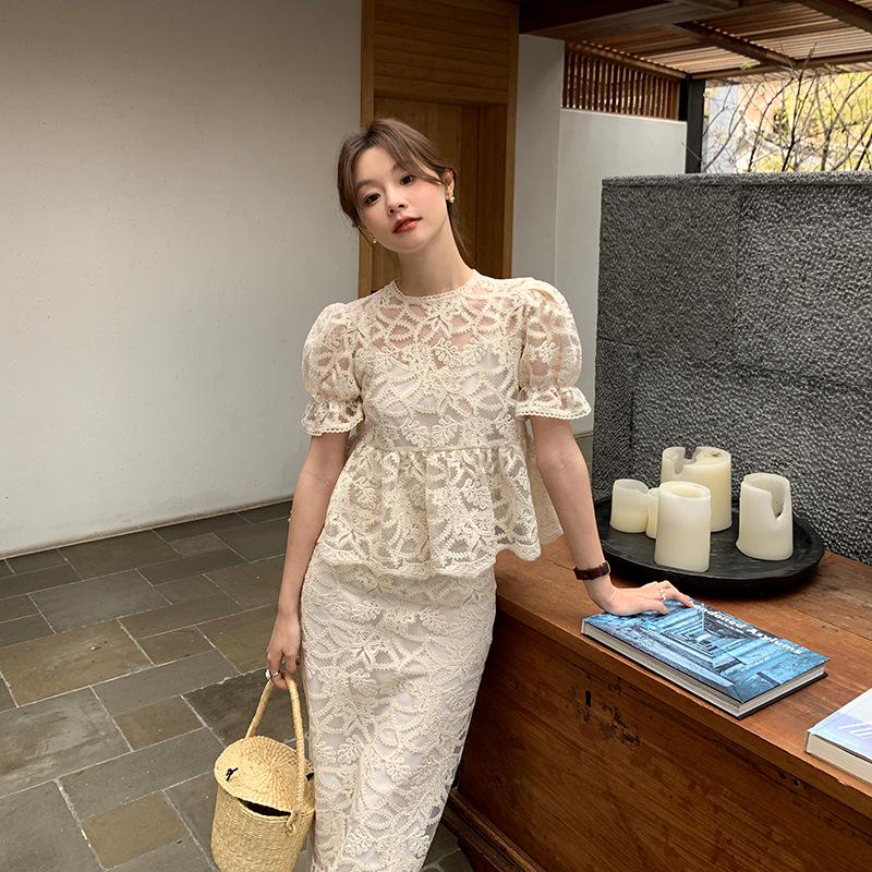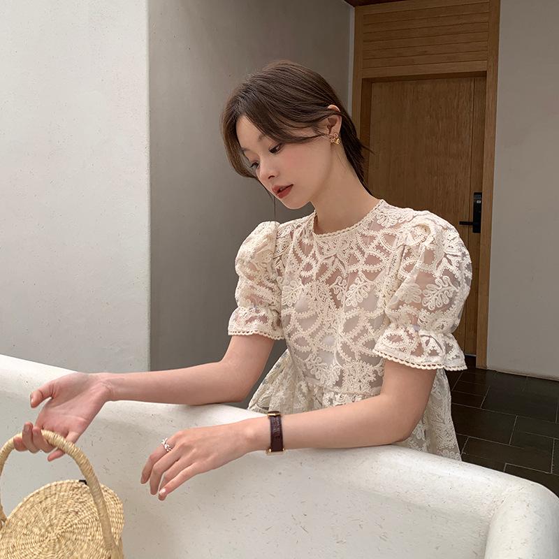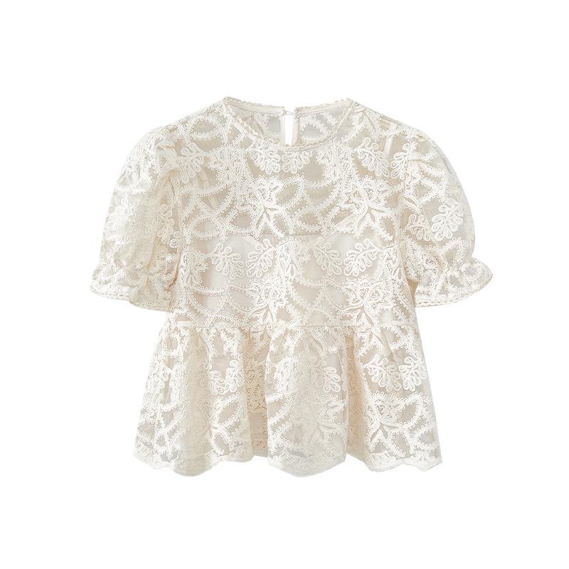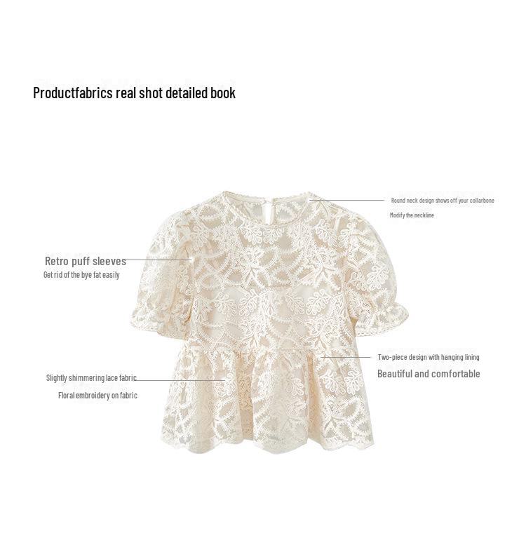 2024 Летний французский легкий кружевной топ с рукавами-фонариками - Интерпретация красоты