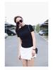 Корейская женская облегающая однотонная футболка с коротким рукавом и полуворотом — купить товар онлайн с бесплатной доставкой по всему миру!