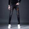 Мужские модные облегающие рваные джинсы скинни с эластичной тканью и нашитыми заплатками