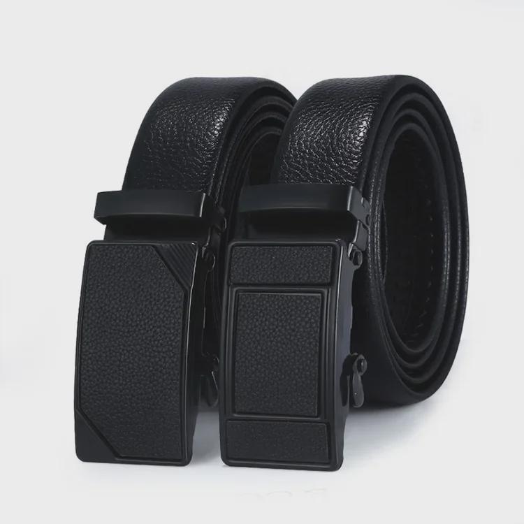 Мужской модный износостойкий ремень из искусственной кожи с автоматической пряжкой Lychee Grain