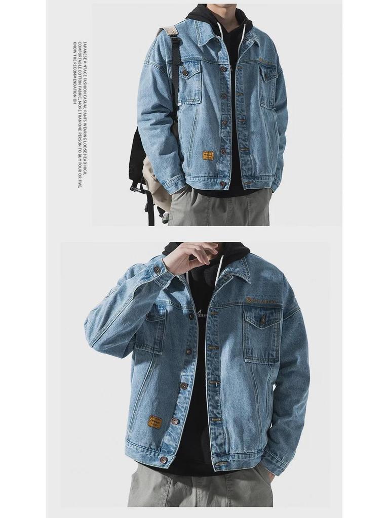 Откройте для себя идеальное сочетание классического стиля и современного комфорта в этой мужской джинсовой куртке в японском стиле.. Эта модная и универсальная вещь, созданная в корейском стиле, идеально подходит как для студентов, так и для повседневных прогулок.. Благодаря вырезу горловины и средней толщине верхней одежды он обеспечивает удобную посадку, которая идеально подходит для переходных сезонов, таких как весна и осень.. Изготовленный из качественных хлопковых материалов, включая хлопковый мех, он обеспечивает долговечность и мягкость на ощупь.. Длинные рукава и свободный крой позволяют с легкостью сочетать в себе практичные элементы рабочей одежды с модным внешним видом, что делает ее обязательным дополнением к любому гардеробу.