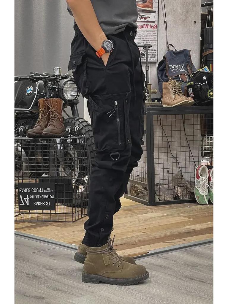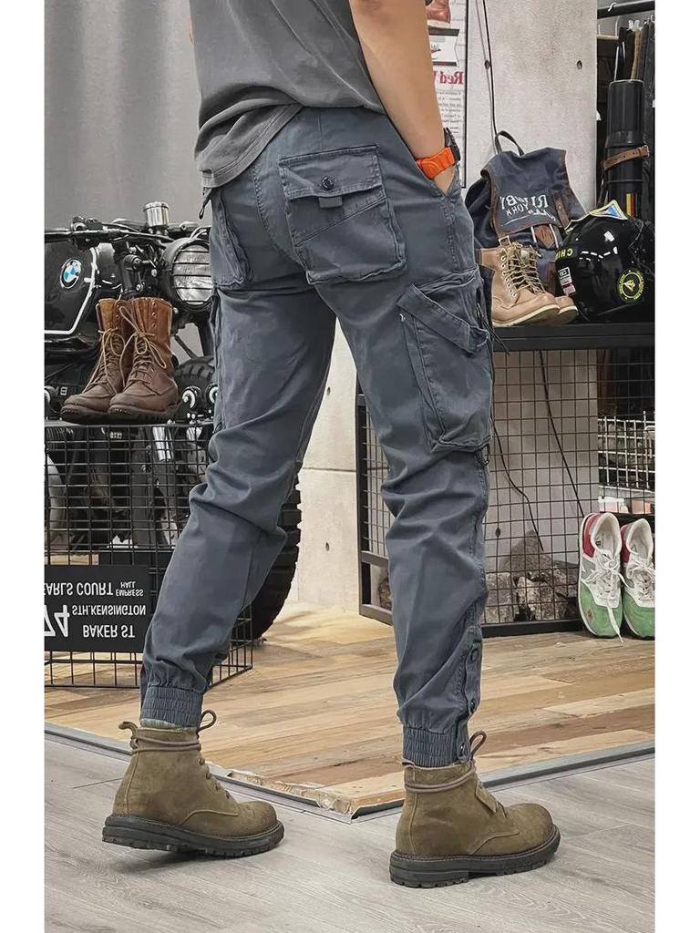 Мужские тактические рабочие брюки прямого кроя - Повседневные брюки для улицы с манжетами на весну/осень