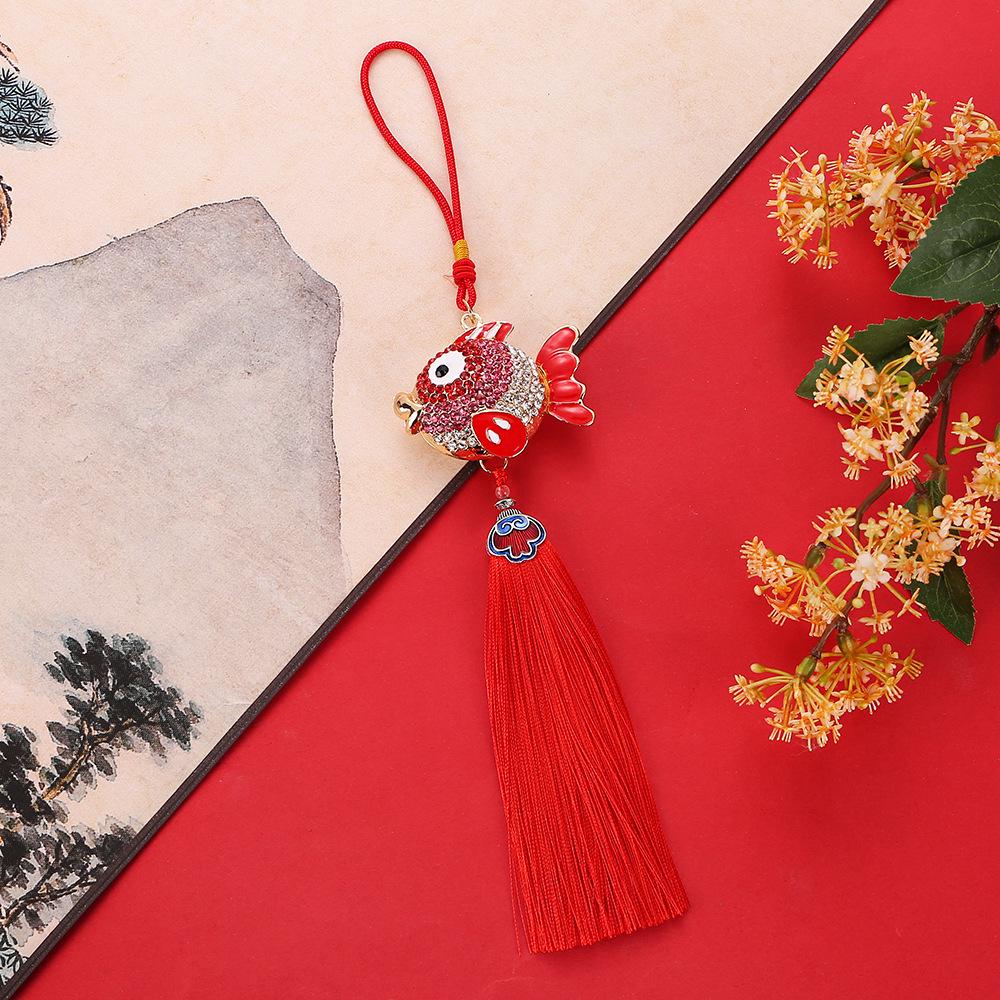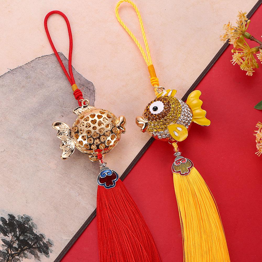Очаровательная подвеска в виде рыбки из цинкового сплава с бриллиантовыми гвоздиками и элегантной кисточкой — стильный аксессуар для автомобиля с карпами кои и небольшой подарок.