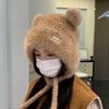 Женская вязаная шапка с милым медведем: Ветрозащитный, плюшевый, защищающий уши дизайн Lei Feng для осени и зимы.