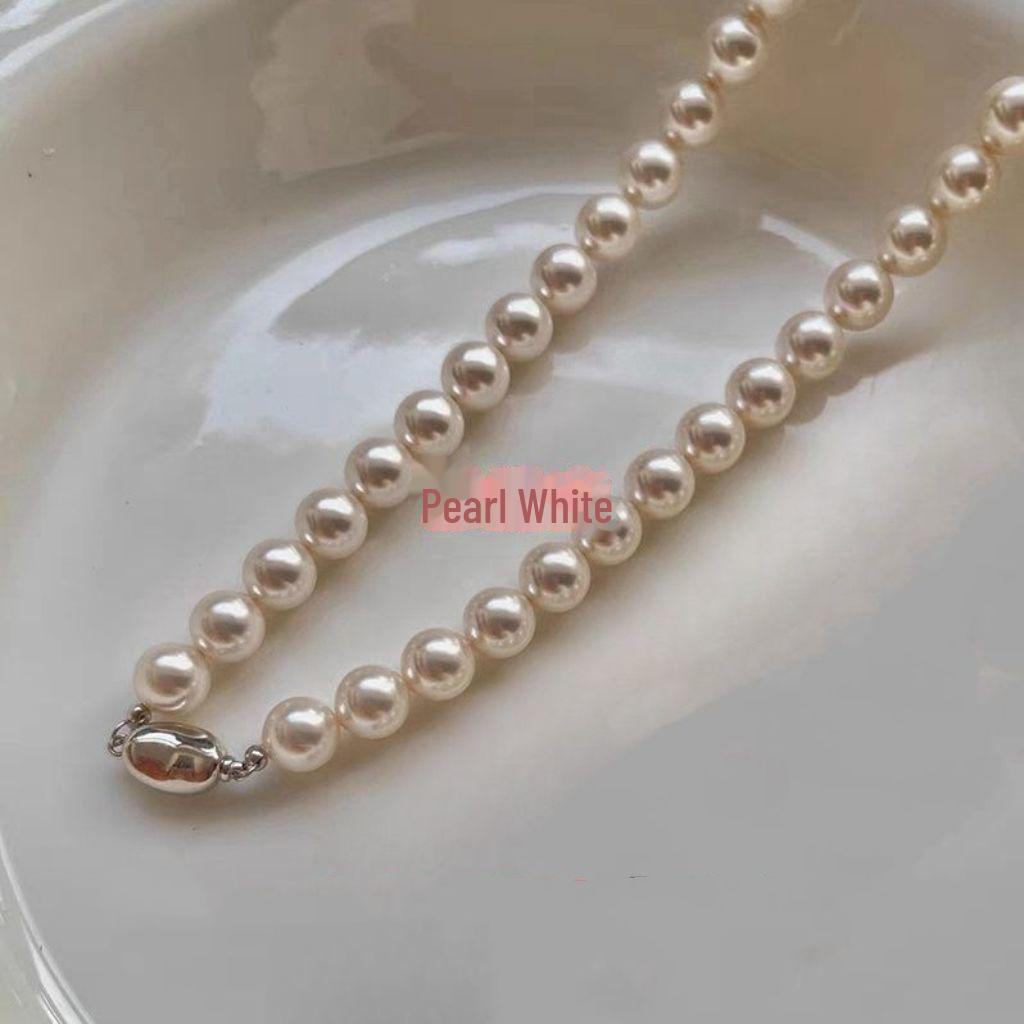 Ожерелье из белого жемчуга Shijia — элегантная, свежая и роскошная цепочка из ракушечного жемчуга для женщин