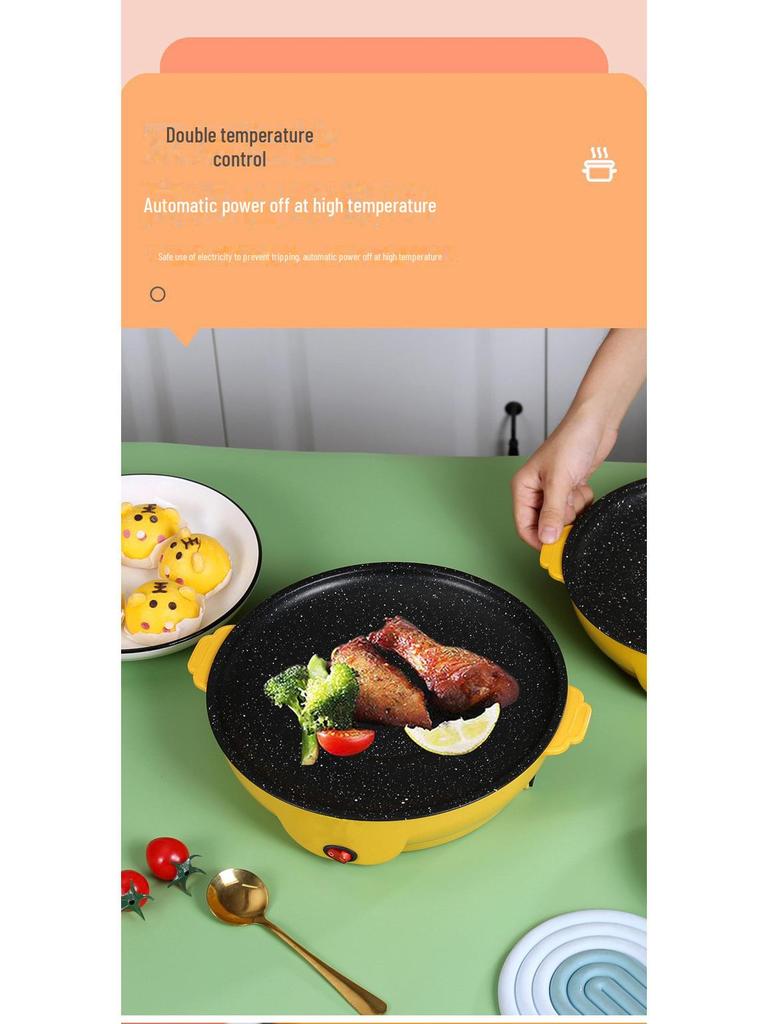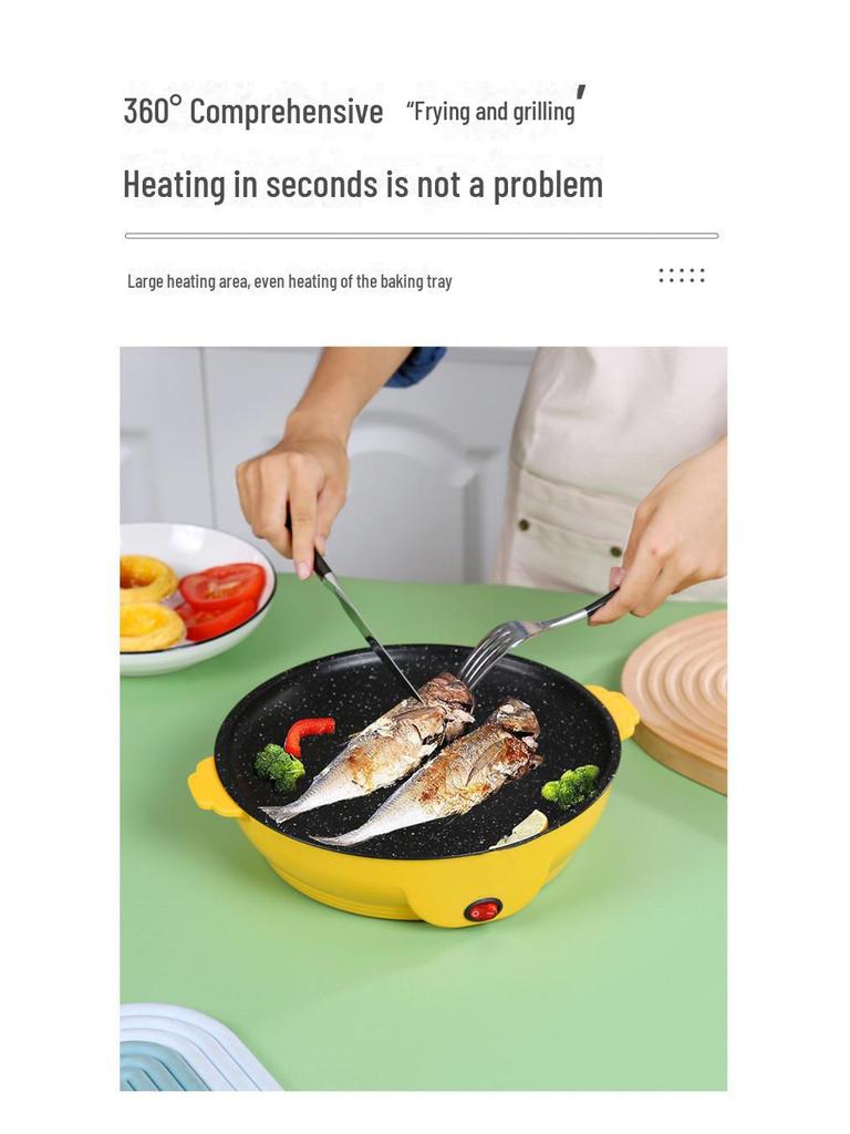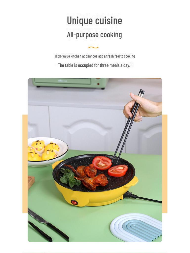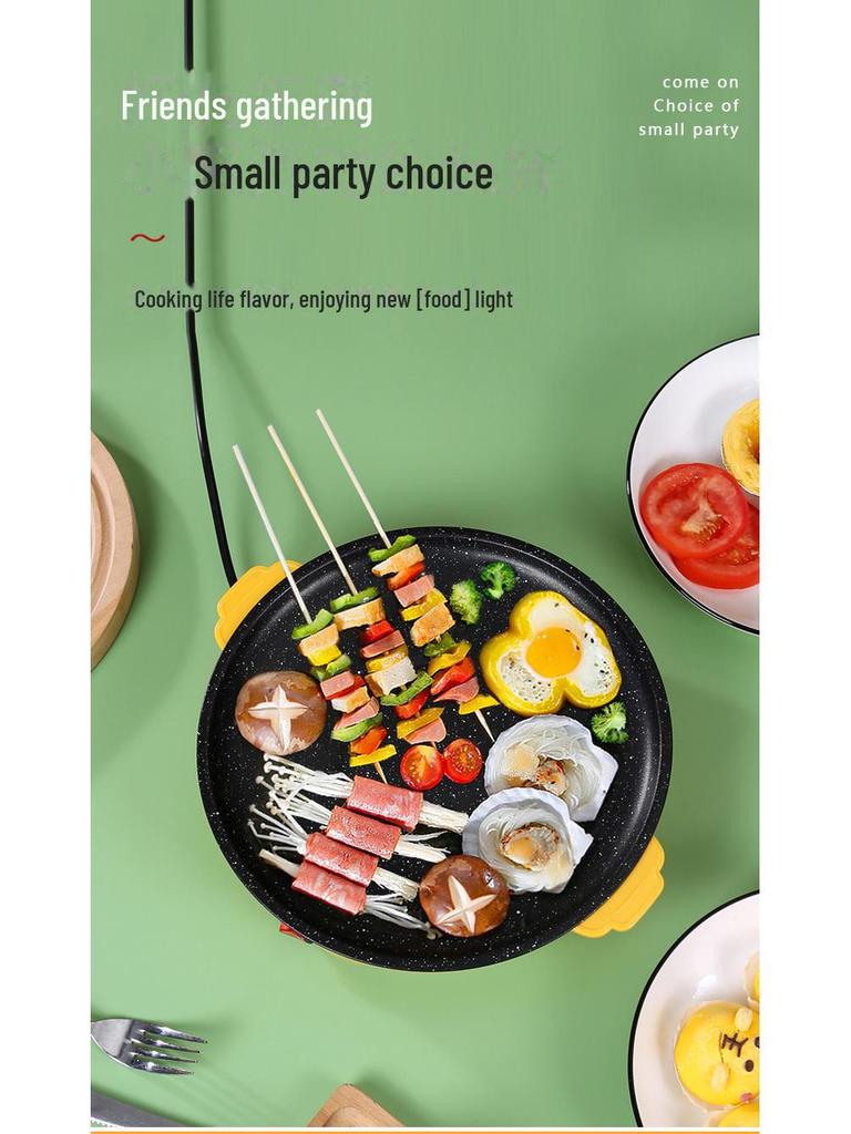 Антипригарная электрическая сковорода-гриль для корейского барбекю и стейков - Компактная и маломощная, Идеально подходит для общежитий и еды на вынос.
