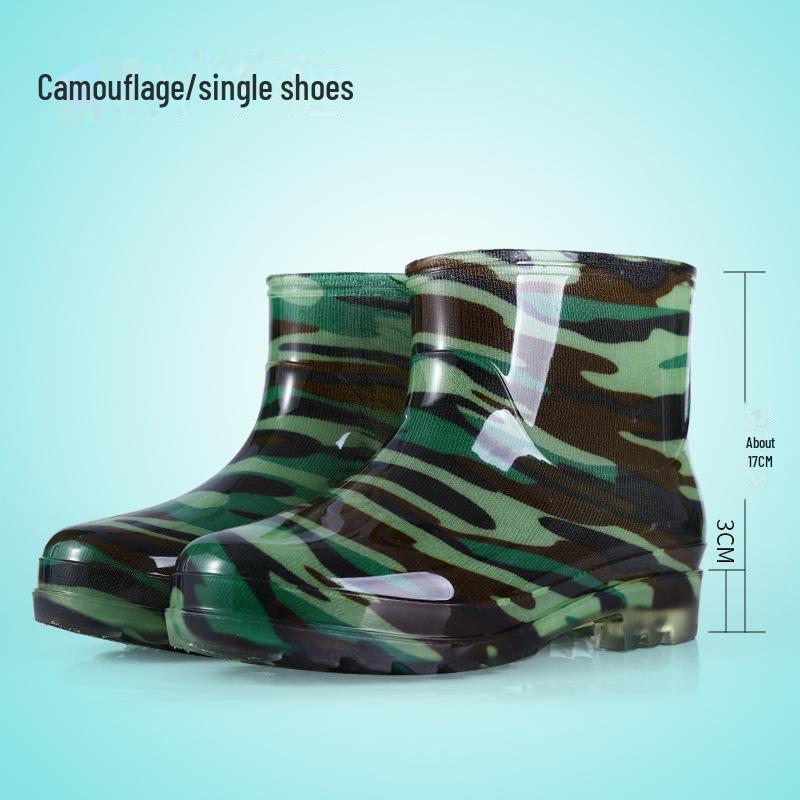 Короткие черные мужские резиновые сапоги - Пылезащитная белая рабочая обувь - Желтые резиновые кухонные туфли - Камуфляжные водонепроницаемые сапоги