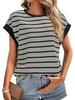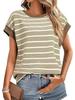 2025 Женская летняя трикотажная футболка свободного кроя в полоску, европейский и американский стиль, круглый вырез.