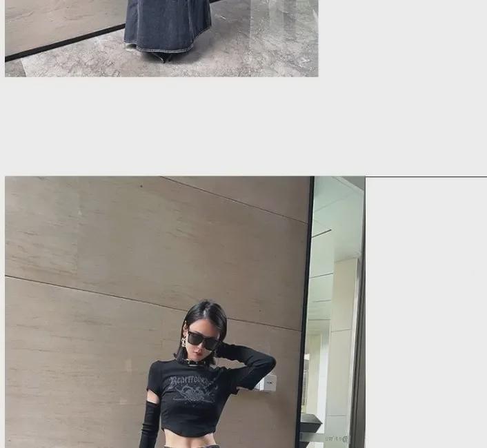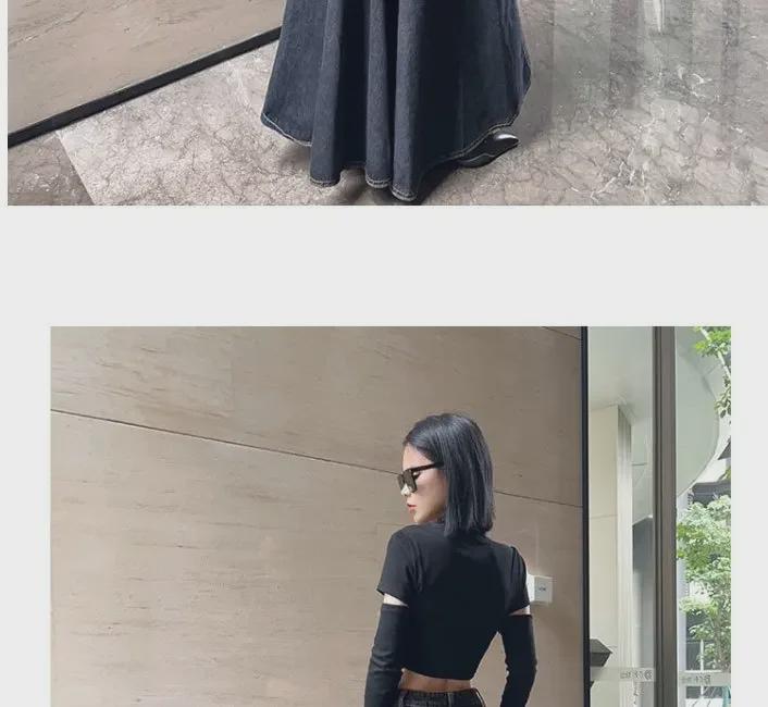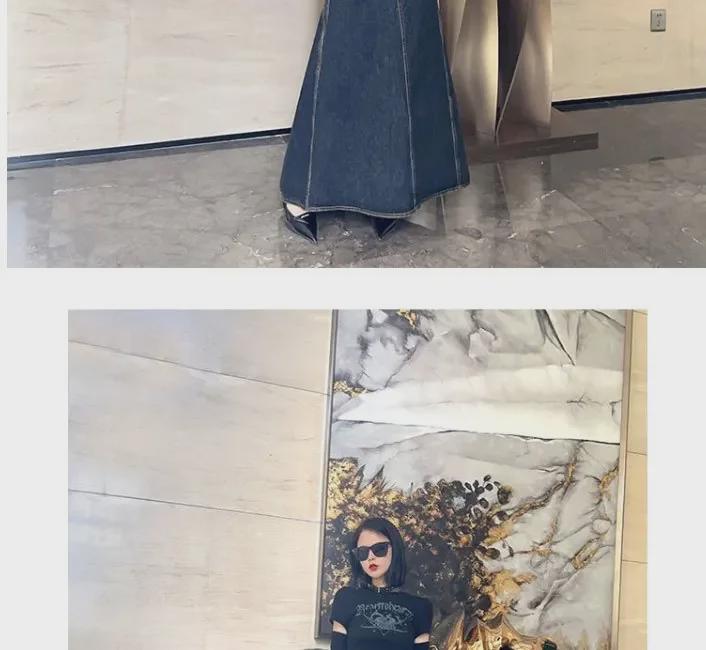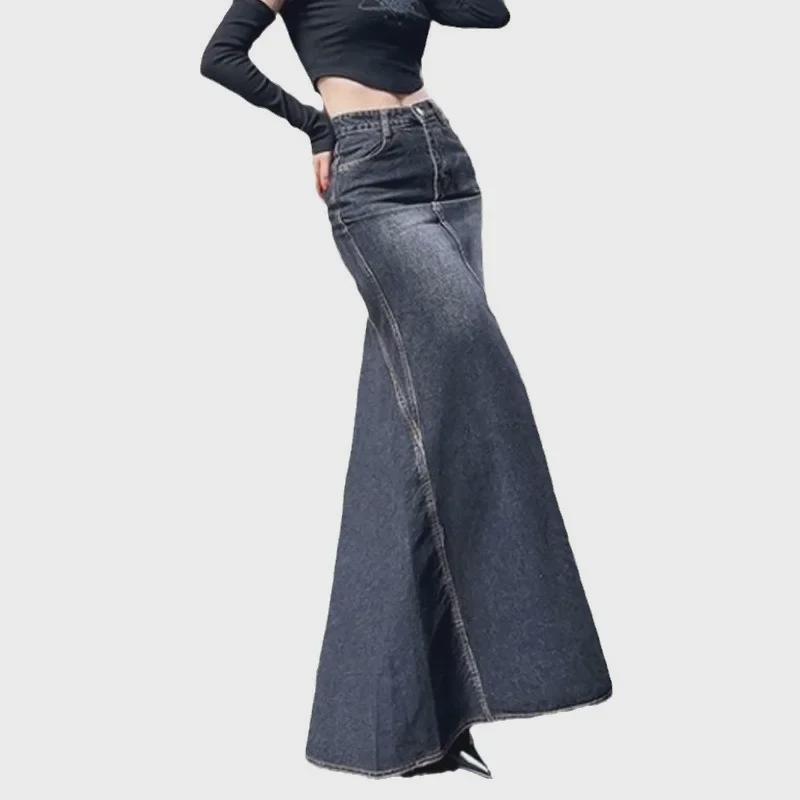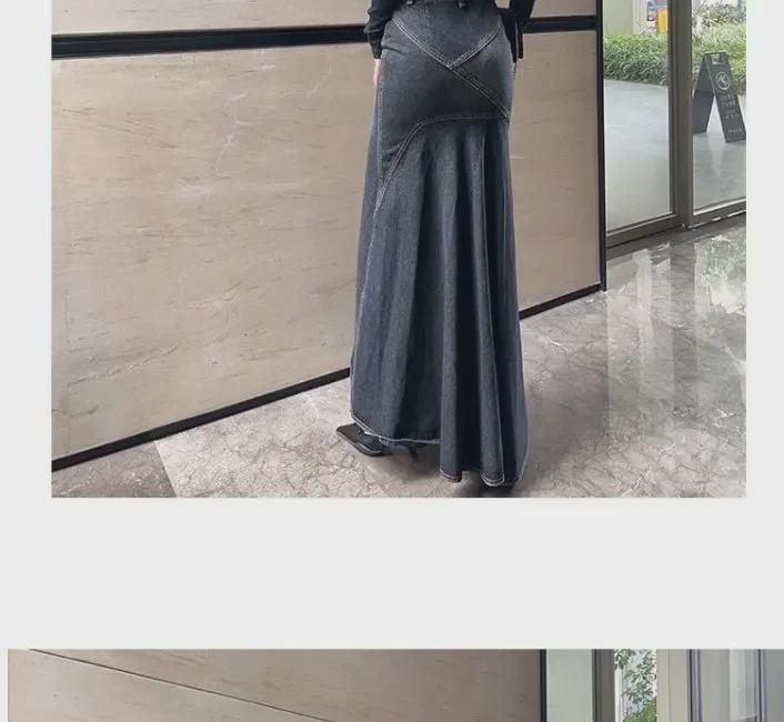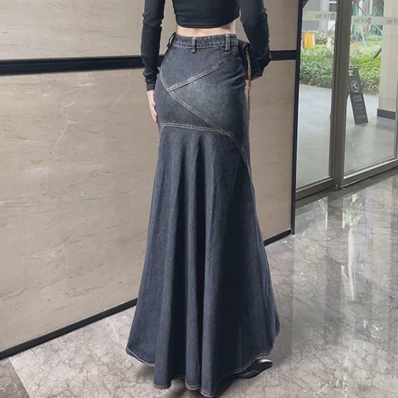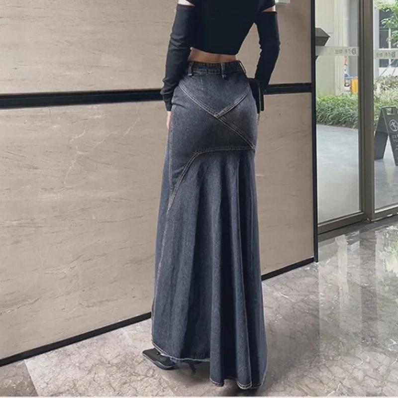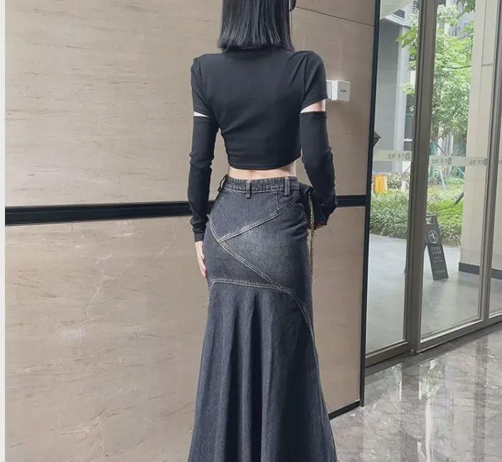 Осенняя ретро-юбка из денима 2023 года с высокой талией и разрезом на бедрах