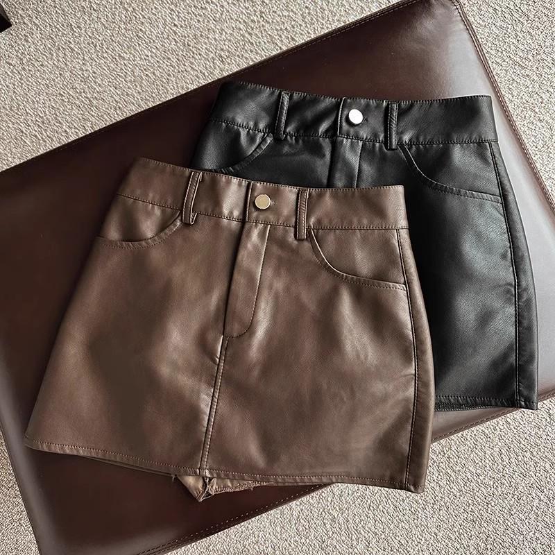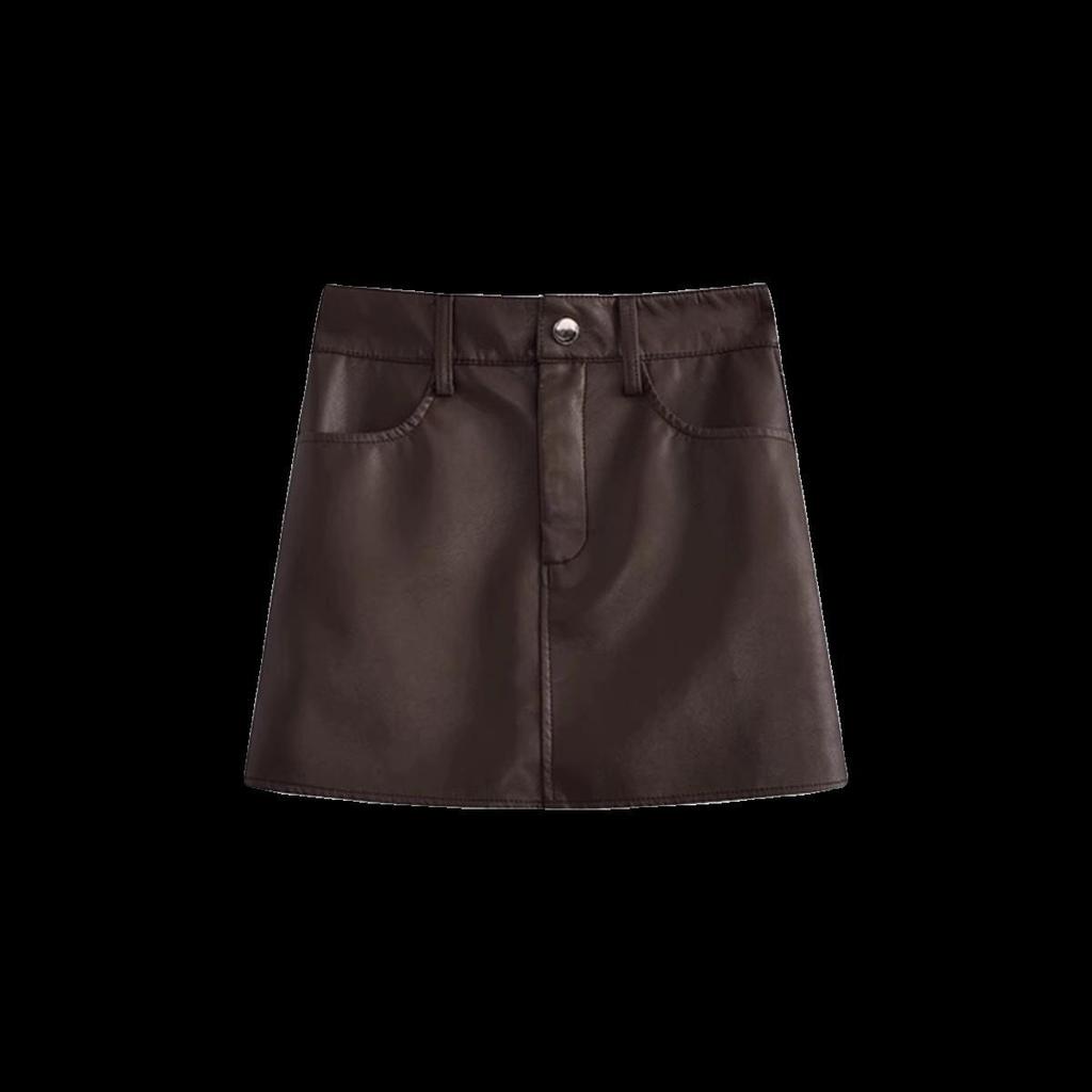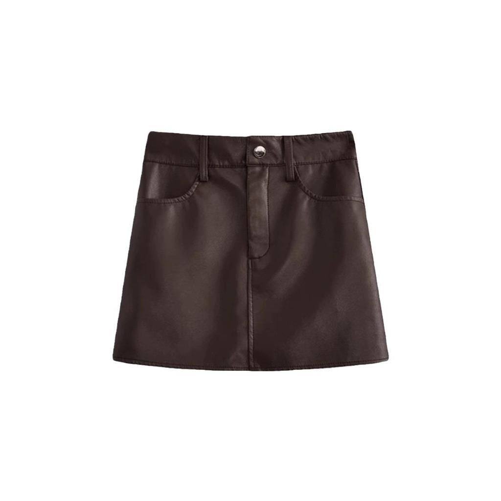 Весна/Лето 2024 Черная юбка А-силуэта из искусственной кожи с высокой талией для женщин