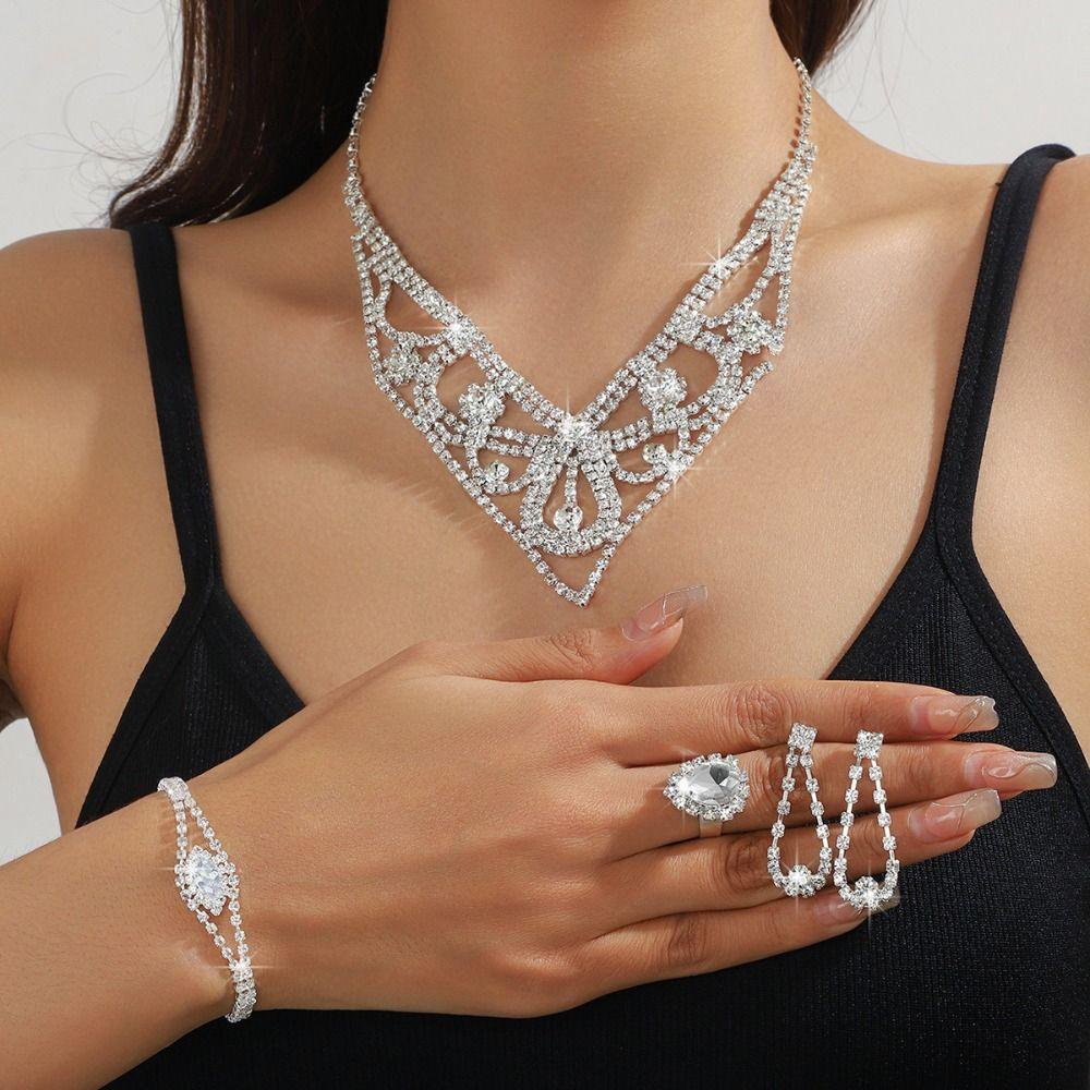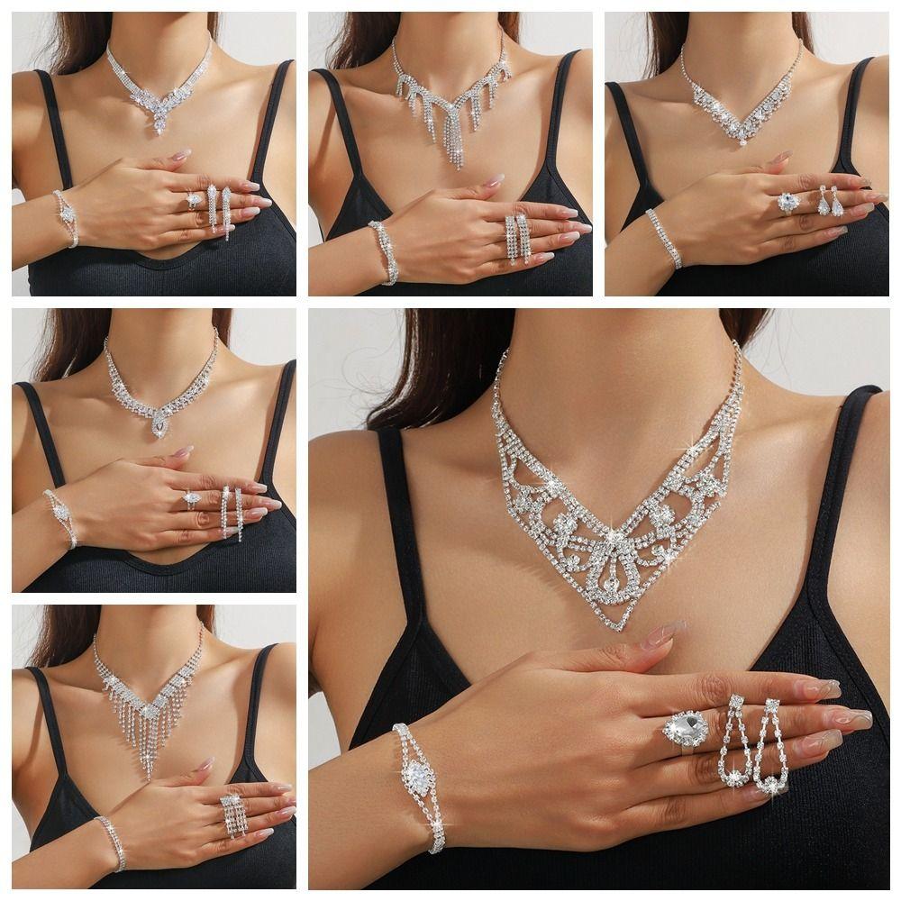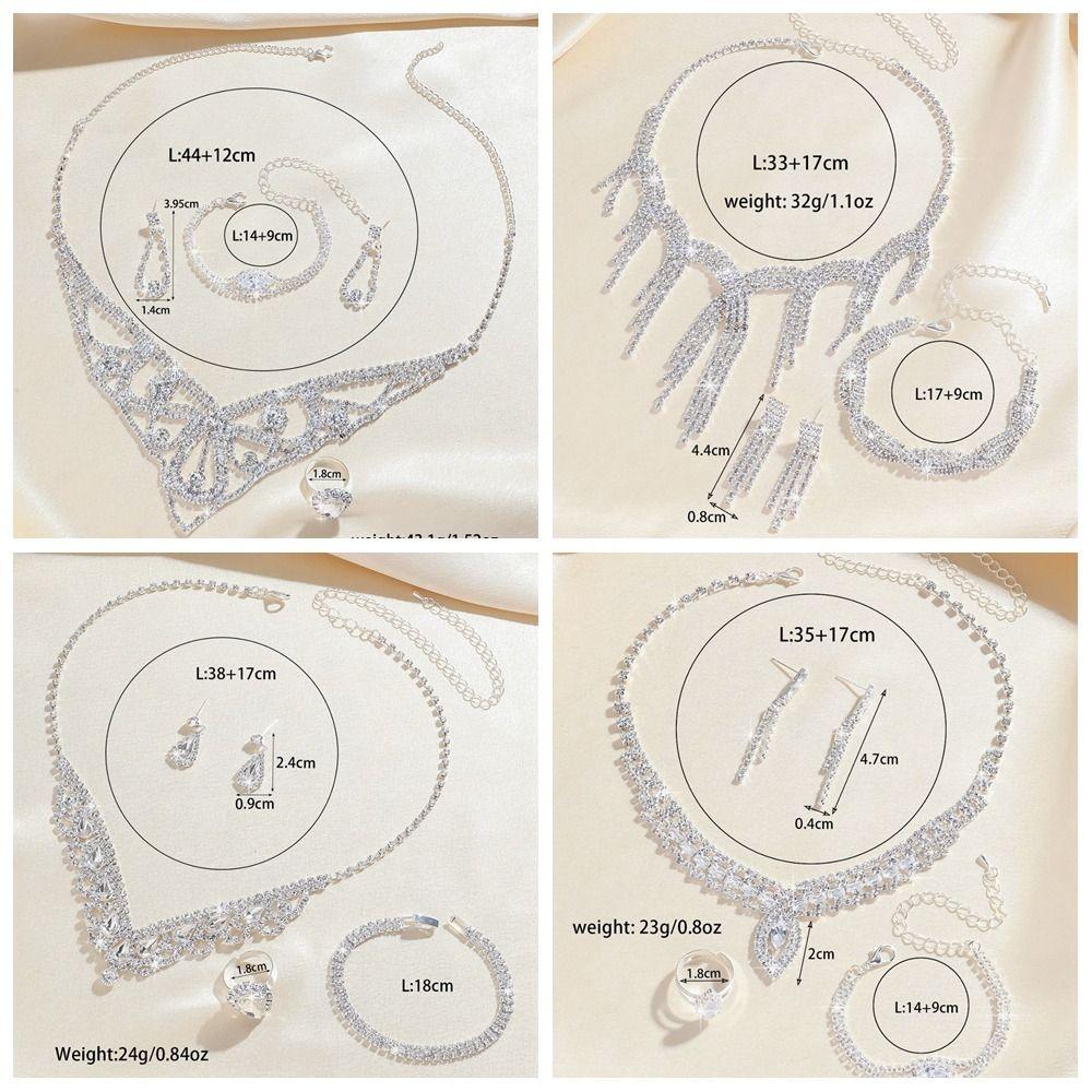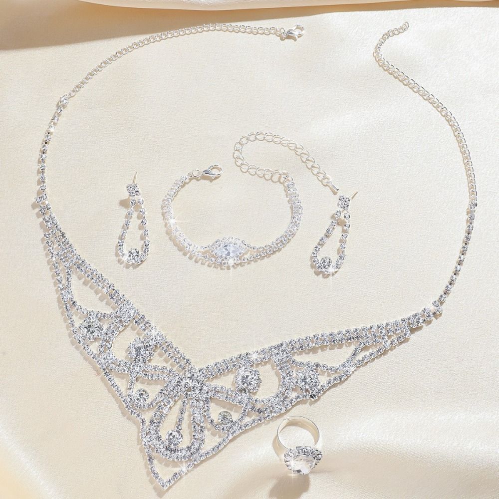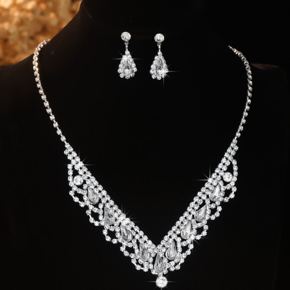 Zircon Necklace Earring Set Elegant Rhinestone Necklace Bridal Jewelry Set Dress Accessories