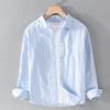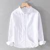 Мужская белая льняная рубашка с длинным рукавом - повседневный свободный крой, в японском стиле, дышащая хлопковая смесь