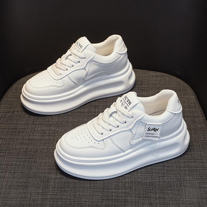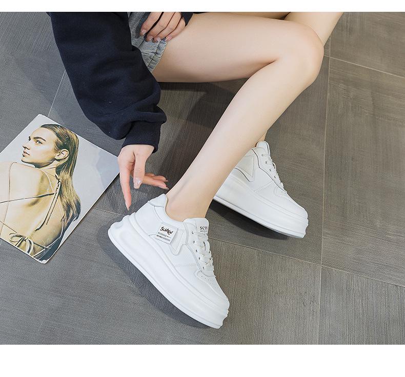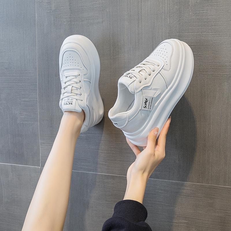 Женские белые кожаные кроссовки 2025 года: Увеличивающие рост, толстая подошва, модные и универсальные для повседневных занятий спортом и студентов