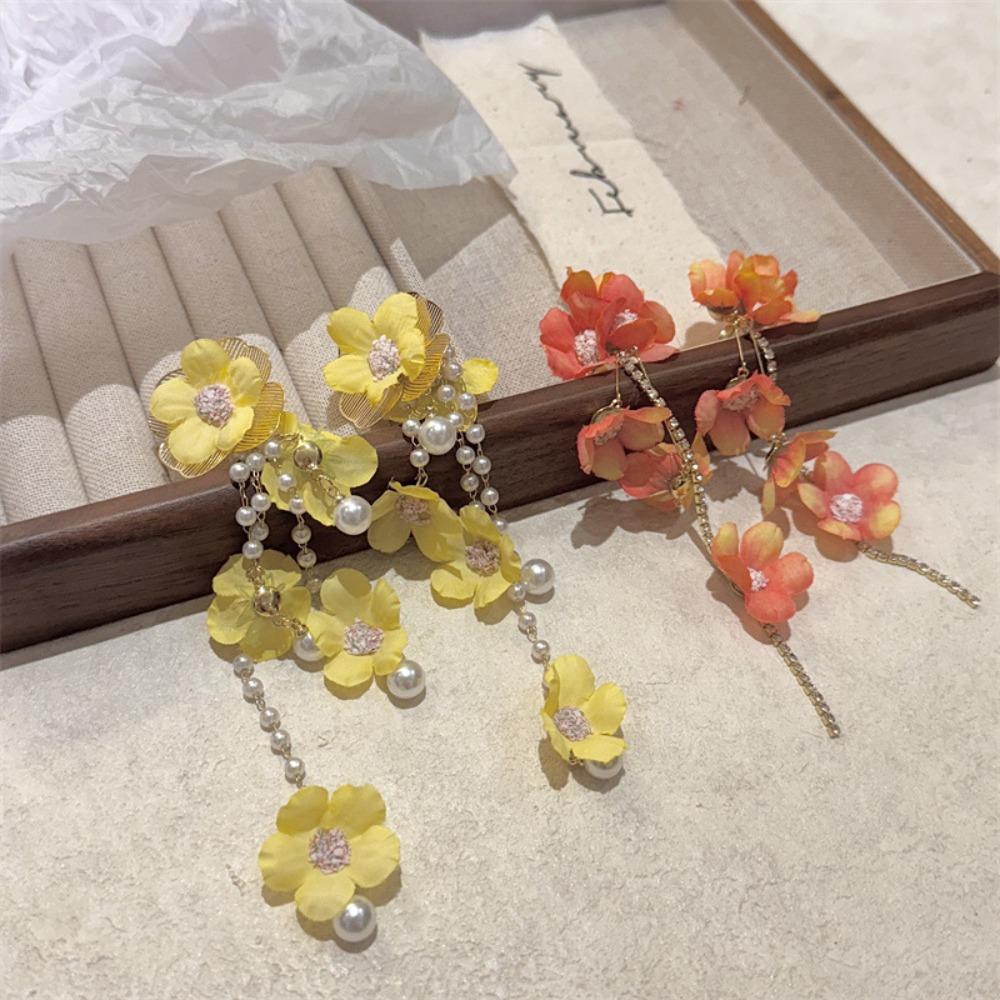 Exaggerated Petals Tassel Earring Glass Crystal Women's Jewelry Cute Flower Dangle Earrings Gift