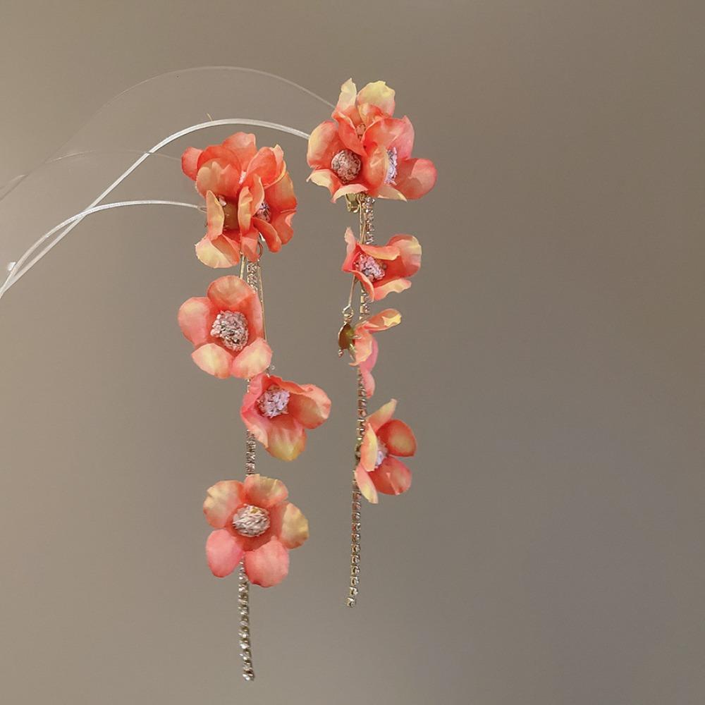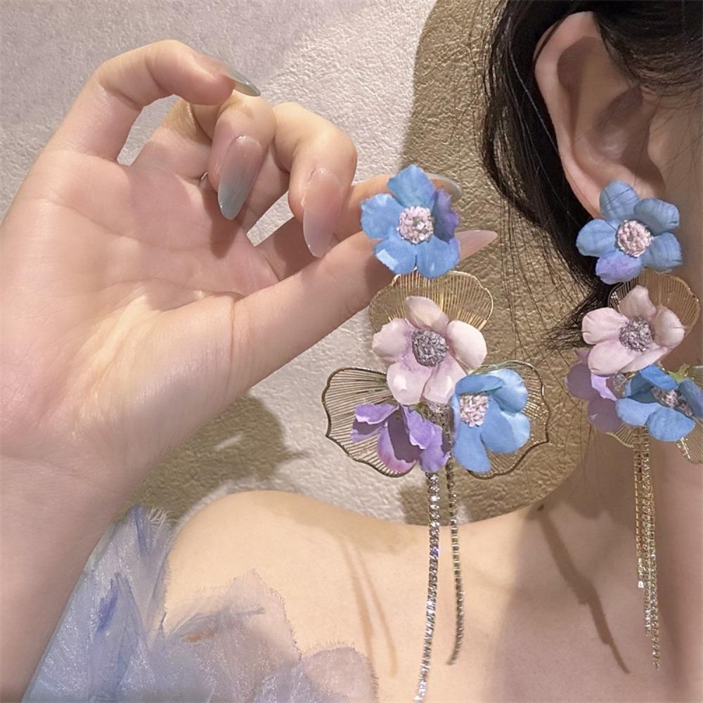 Серьги-подвески в форме цветка, милые женские ювелирные изделия, модные серьги-кисточки с лепестками для вечеринки