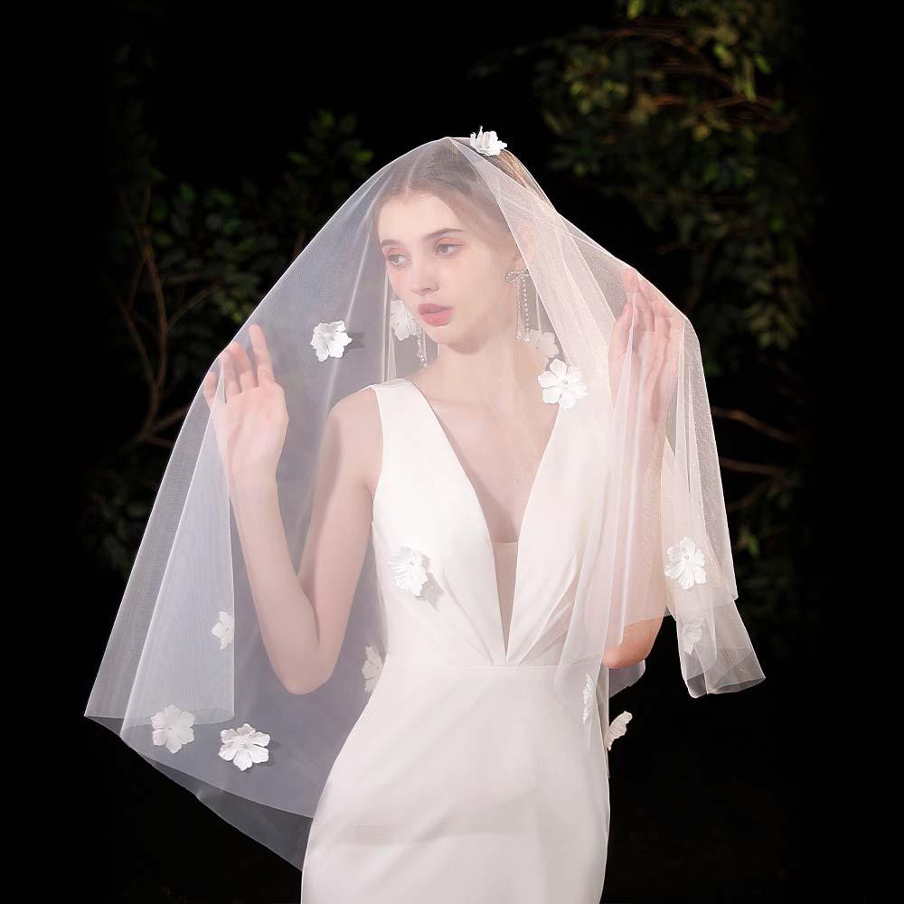 Вышитая свадебная фата Длинный свадебный головной убор Красивый свадебный головной убор невесты Брак — купить товар онлайн с бесплатной доставкой до всему миру!