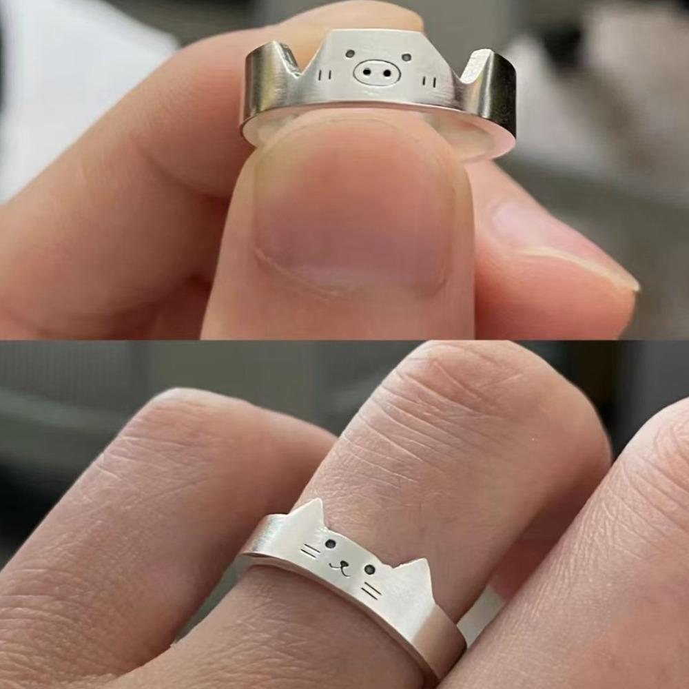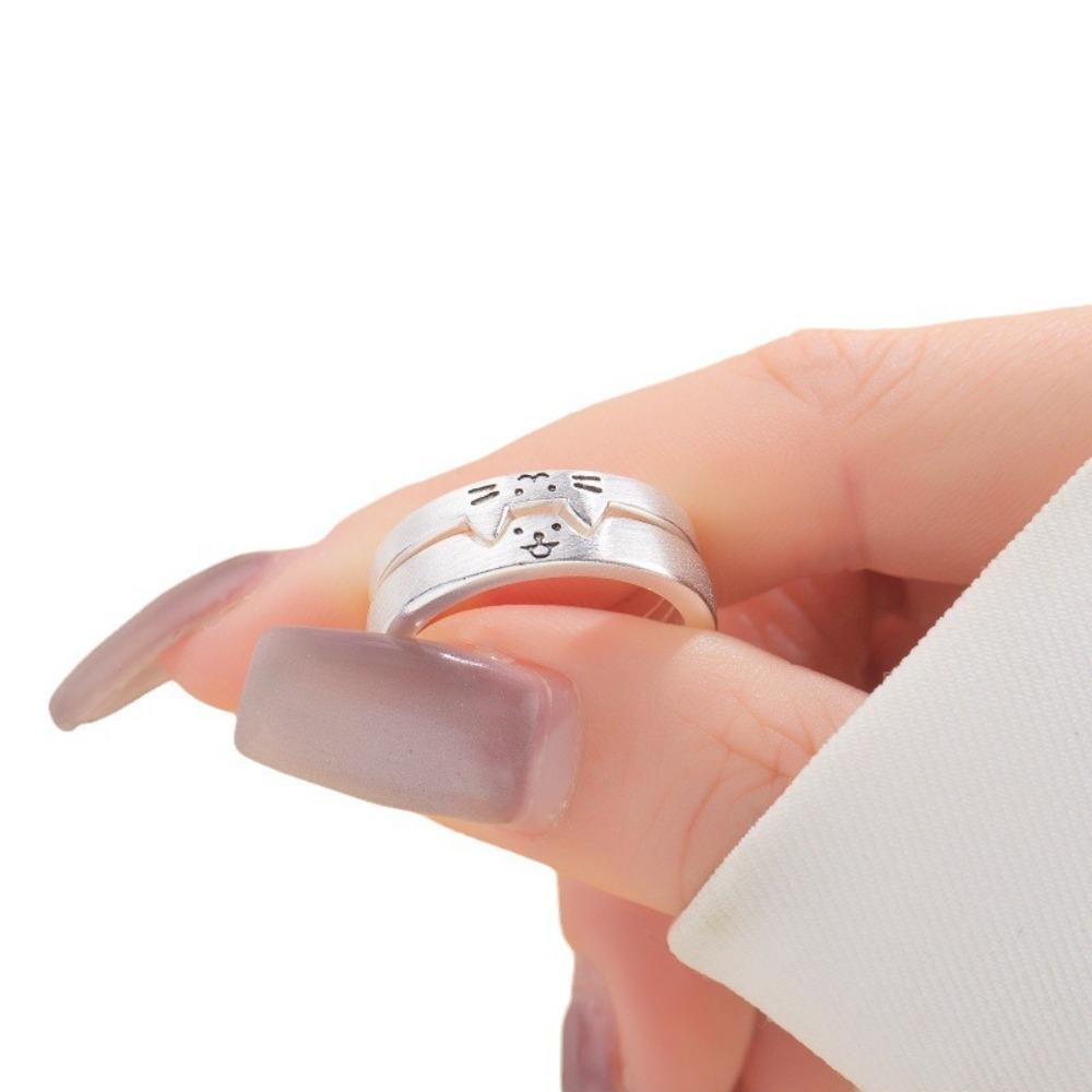 Geometric Animal Couple Ring Cute Dog Valentine's Day Gift Personality Cat Opening Ring Decoration