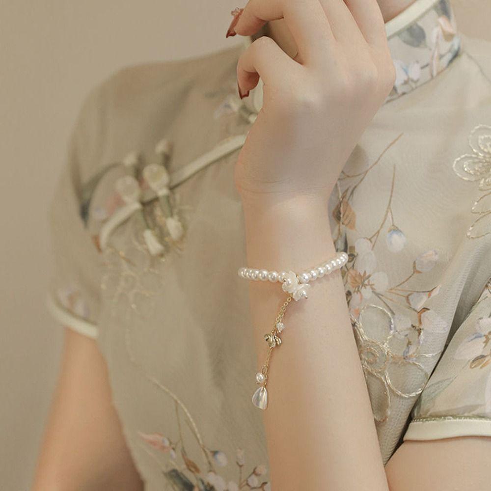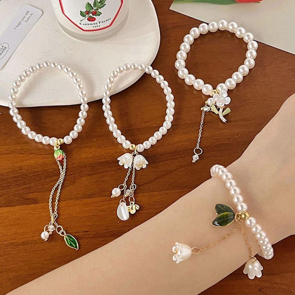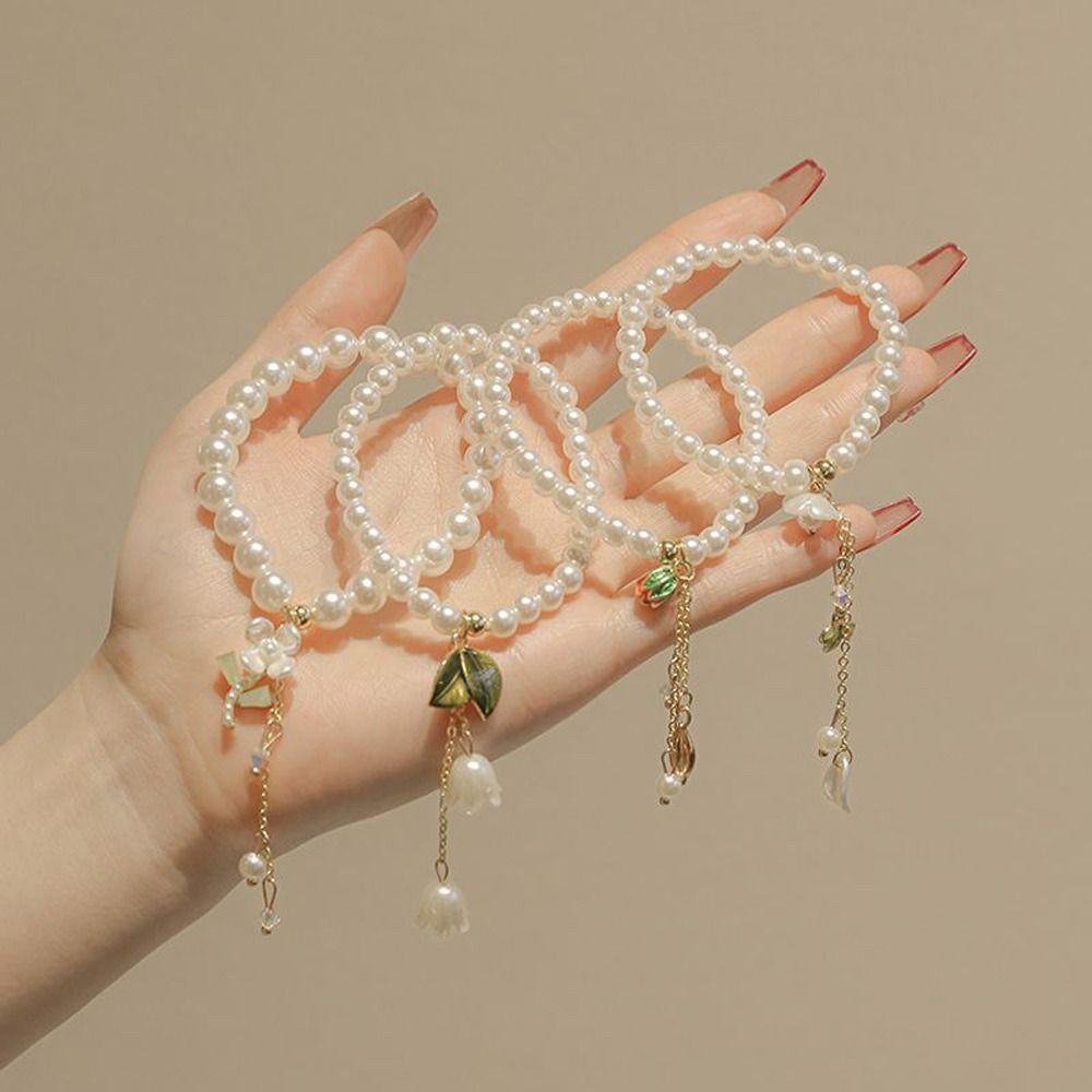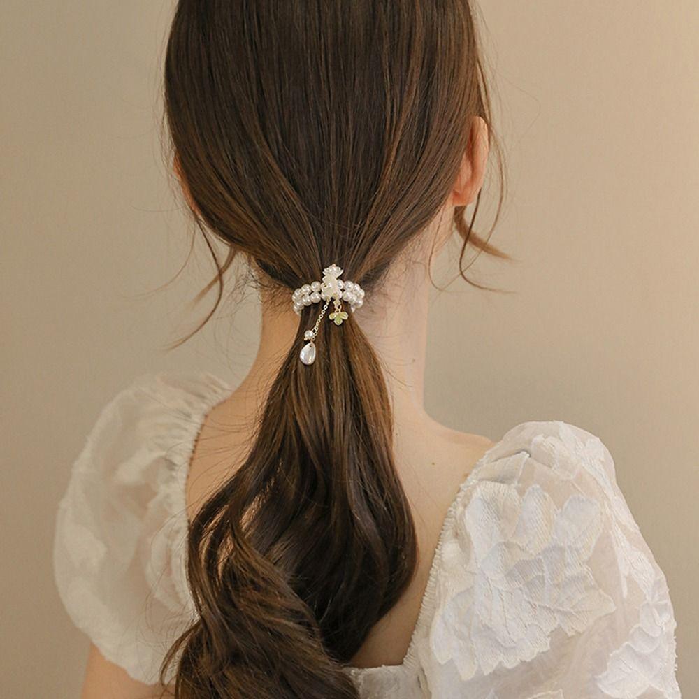 Для девочек Жемчужные повязки для волос с кисточками в виде листьев тюльпана Корейские браслеты для волос Браслеты с веревками для женщин