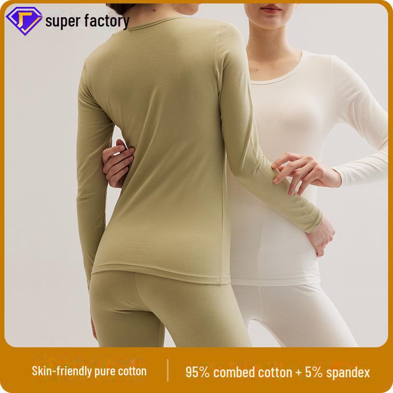 Женский комплект термобелья из хлопка с круглым вырезом, осень/зима, большой размер — купить товар онлайн с бесплатной доставкой до всему миру!