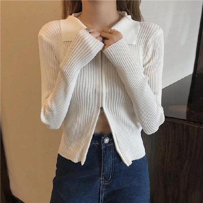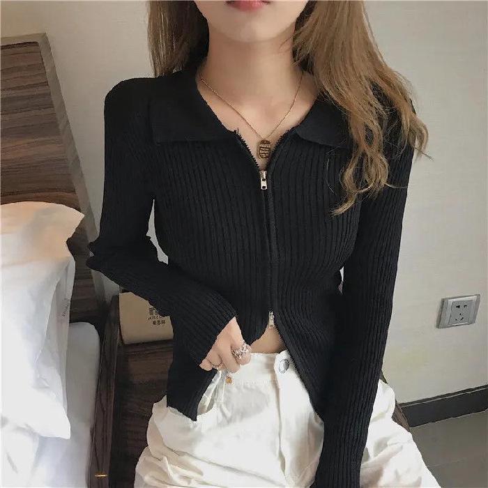 Индонезийский трикотажный женский кардиган с длинными рукавами и застежкой-молнией