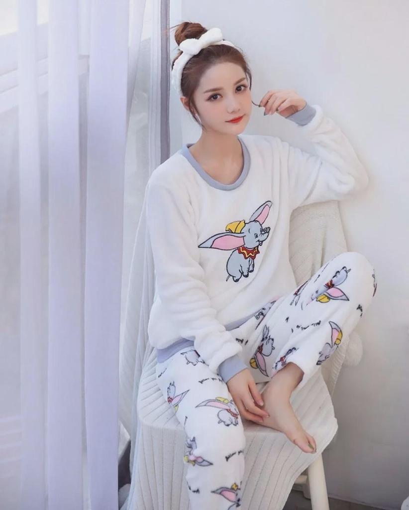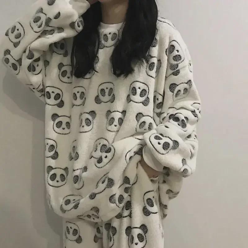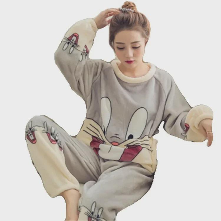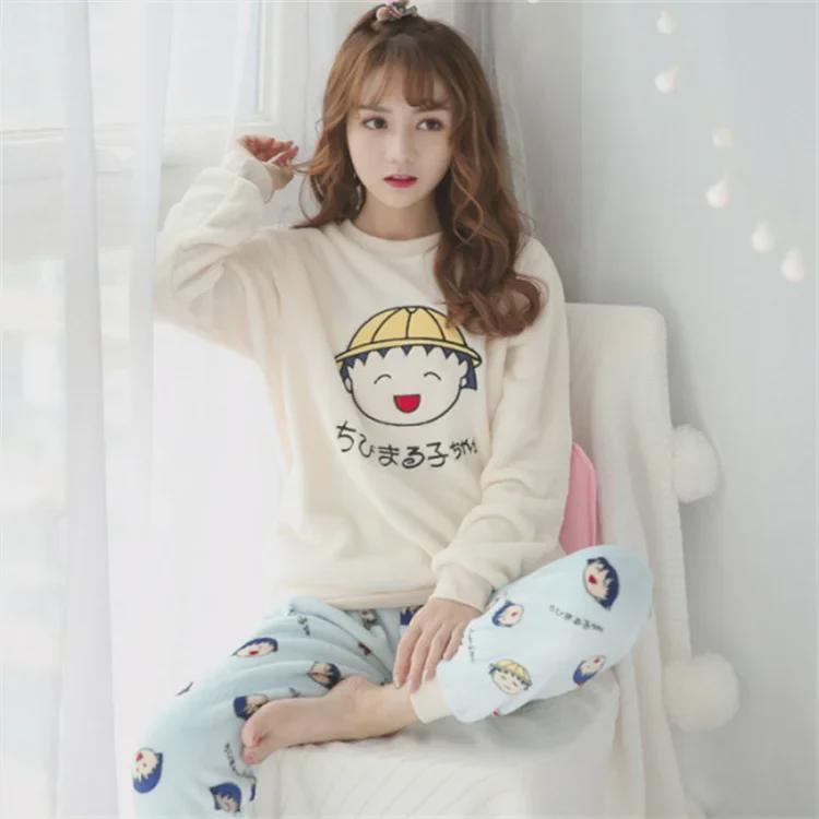 Женский зимний фланелевый пижамный комплект - корейский стиль, плотный с длинными рукавами, плюс бархатный коралловый флис, милая домашняя одежда для осени и зимы
