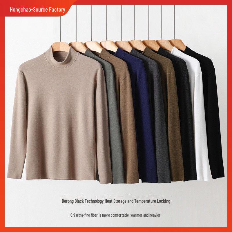 Мужская теплая бесшовная рубашка из немецкого бархата с высоким воротником - облегающий крой, зимний сохраняющий тепло топ