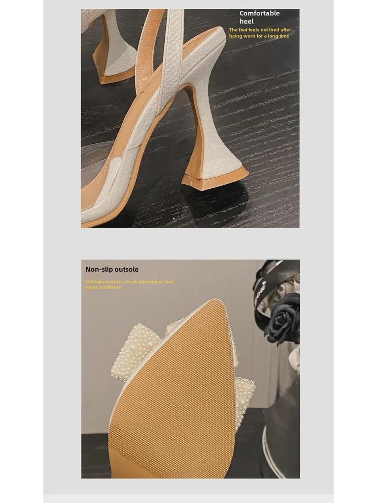 Женские прозрачные босоножки на высоком каблуке с жемчужным бантом 2024 года