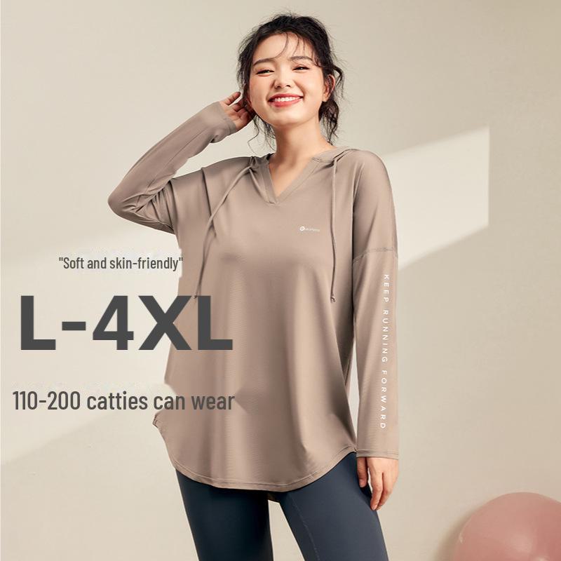 Женская майка для йоги с капюшоном больших размеров — облегающая, дышащая, быстросохнущая, с длинным рукавом для фитнеса