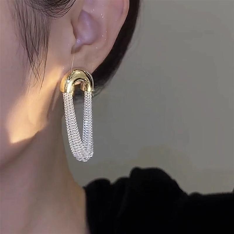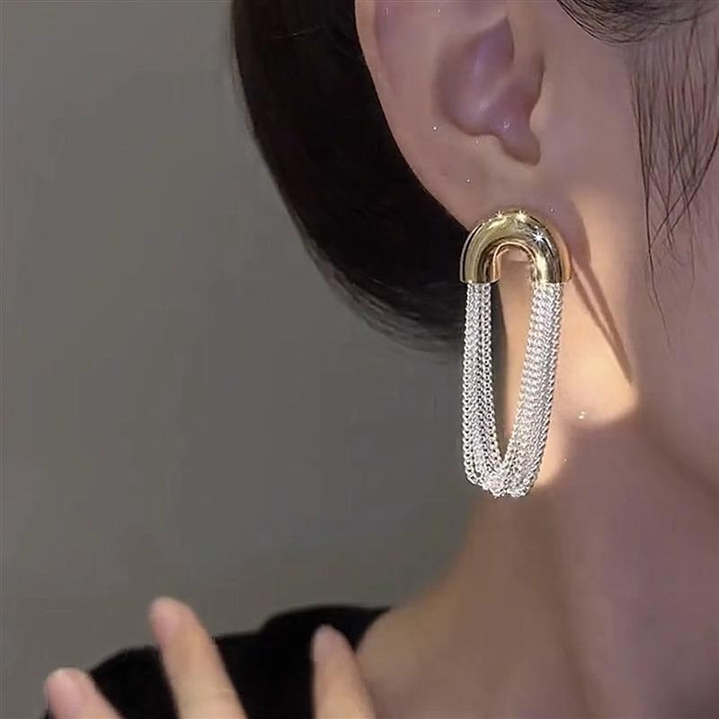 Овальные модные изогнутые металлические цепочки-серьги, серебряные иглы S925, роскошный дизайн класса люкс