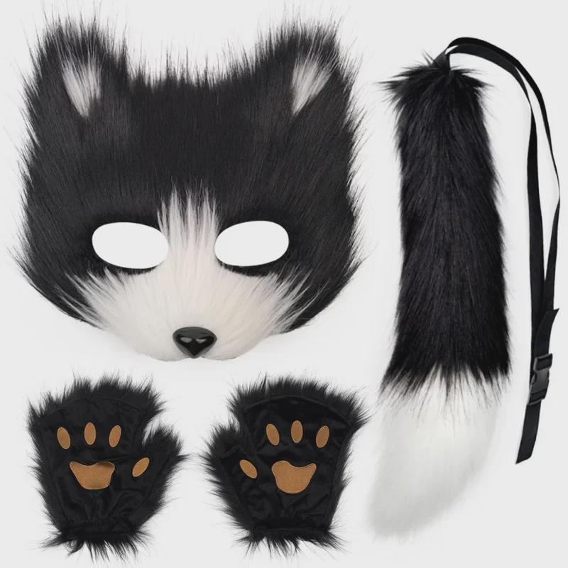 Маска лисы ручной работы и плюшевый хвост в комплекте с перчатками для Хэллоуина или косплея