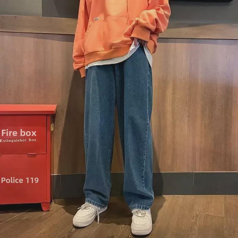 Мужские черные джинсы прямого кроя в стиле ретро с широкими штанинами — новый осенний тренд, свободный крой, доступны большие размеры.