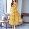 Женское платье длиной до колена с короткими рукавами, цветочным принтом, круглым вырезом и приталенным кроем, лето 2021 г.